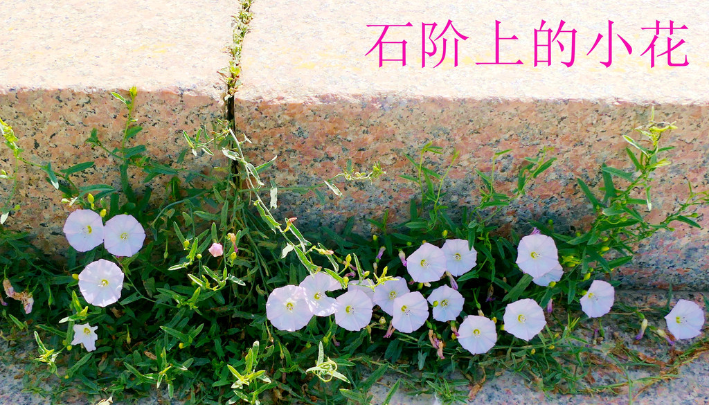 下山时,在登山石阶的缝隙中看到一种玲珑精致的小花,形状好似牵牛花,但其花朵奇小,与内地常见之观赏牵牛花截然不同,不知是否为牵牛花的原始野生品种。