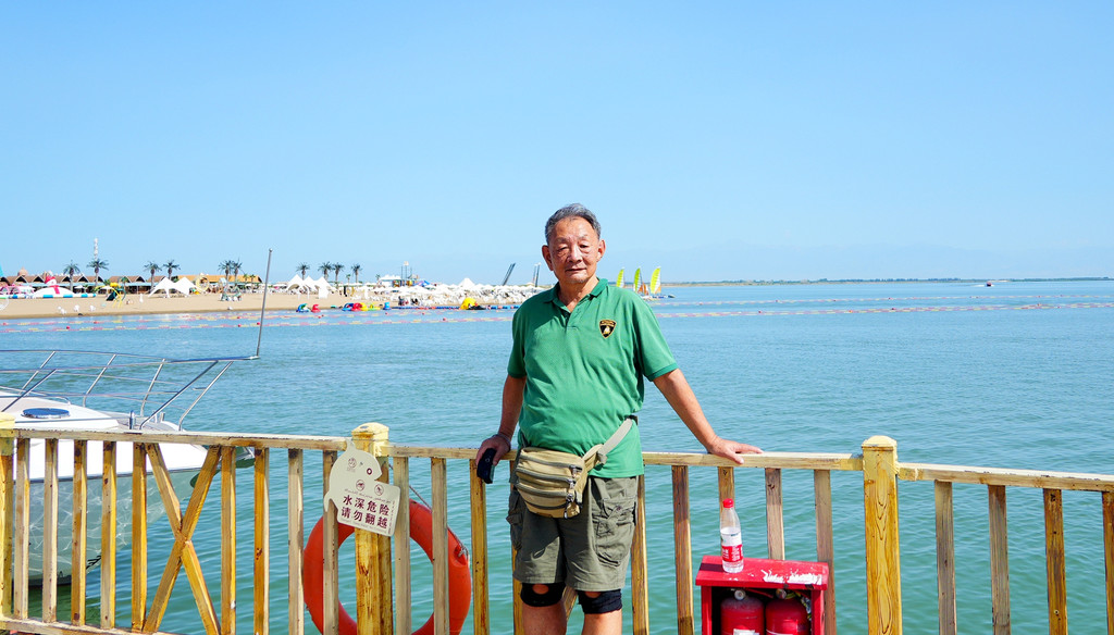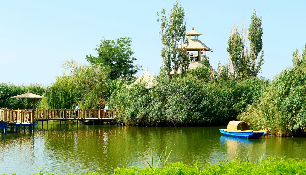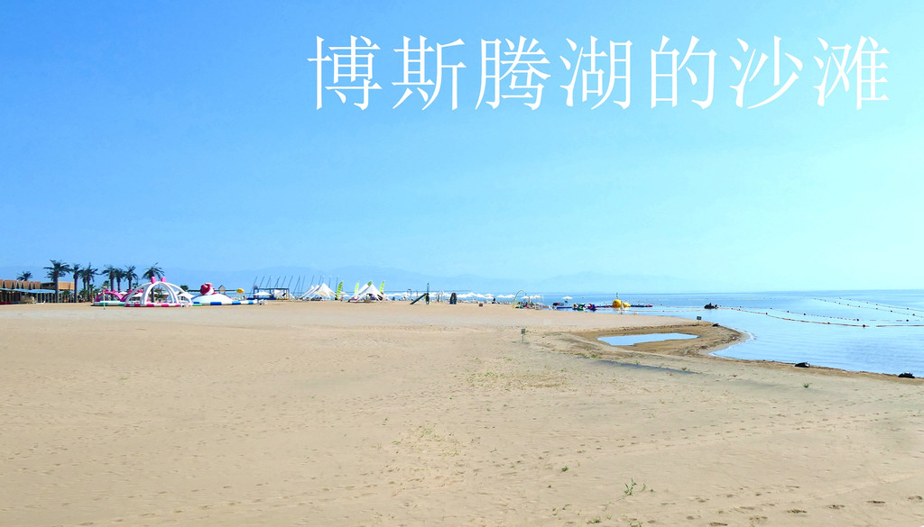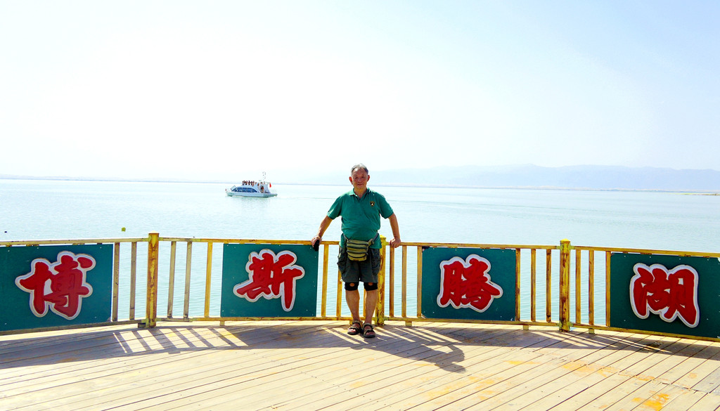 大河口景区位于博斯腾湖西侧,地域广袤,湖畔不仅有大片沙滩,还配备了众多旅游设施。可惜我们时间有限,无法尽兴游览,仅沿着一条深入湖面200多米的长栈桥,走了个来回,便匆匆离开了景区。