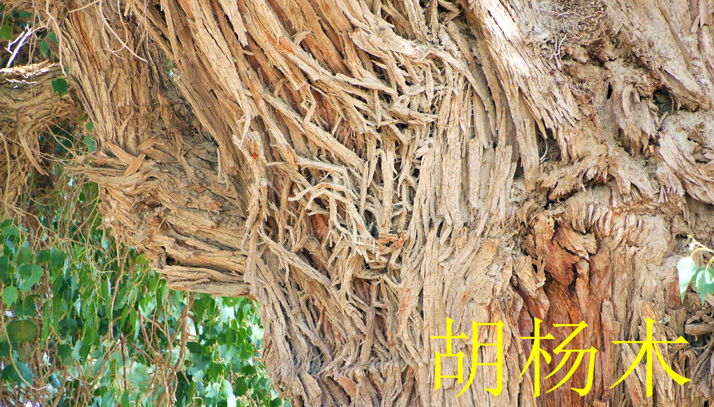 长期的恶劣环境让胡杨树皮出现严重剥落,曝露出内部粗糙的木质,也让树皮布满了纵横交错的纹路,犹如一张巨大的网覆盖在树干之上。这些纹路宽窄不一、深浅各异,仿佛是用锋利的刻刀精心雕琢而成。随着树龄的增长,纹路不断加深加宽,相互交织,形成了一幅独特的天然画卷,记录着胡杨历经的风雨沧桑。