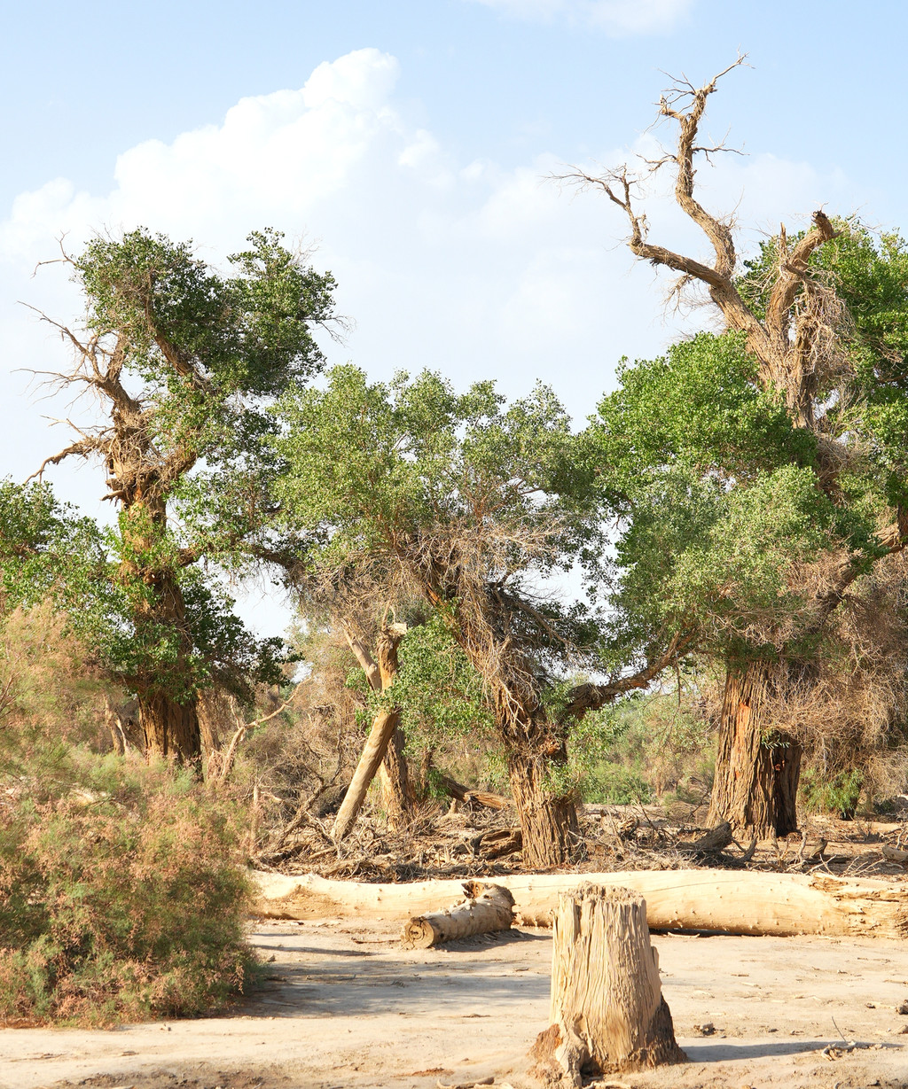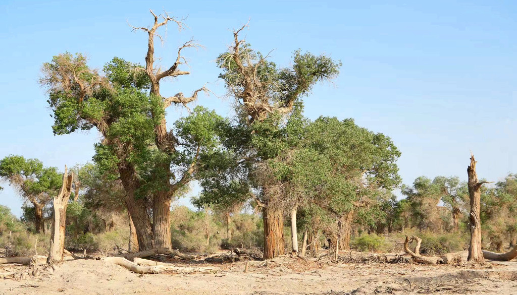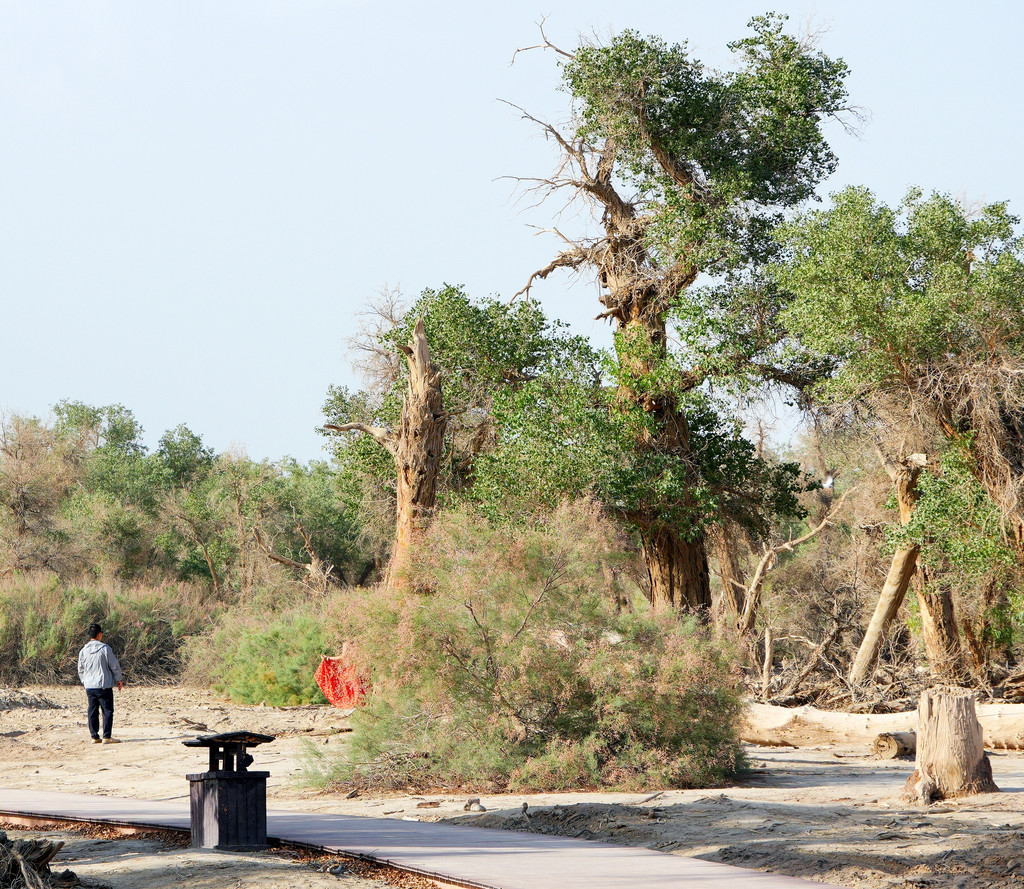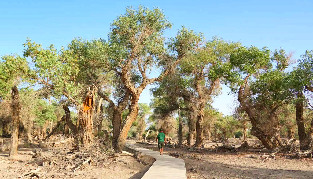当地人说,胡杨生命力极强,能“千年不死”;即便死去,树干也“千年不倒”;倒地后,更是“千年不腐”。我们行走短短一程,随处可见这“三个千年”的奇异景观。胡杨屹立于此,见证着历史的变迁与岁月沧桑,它们是大自然馈赠的珍贵“活化石”。