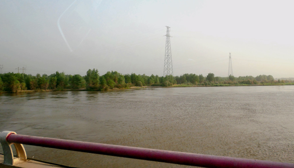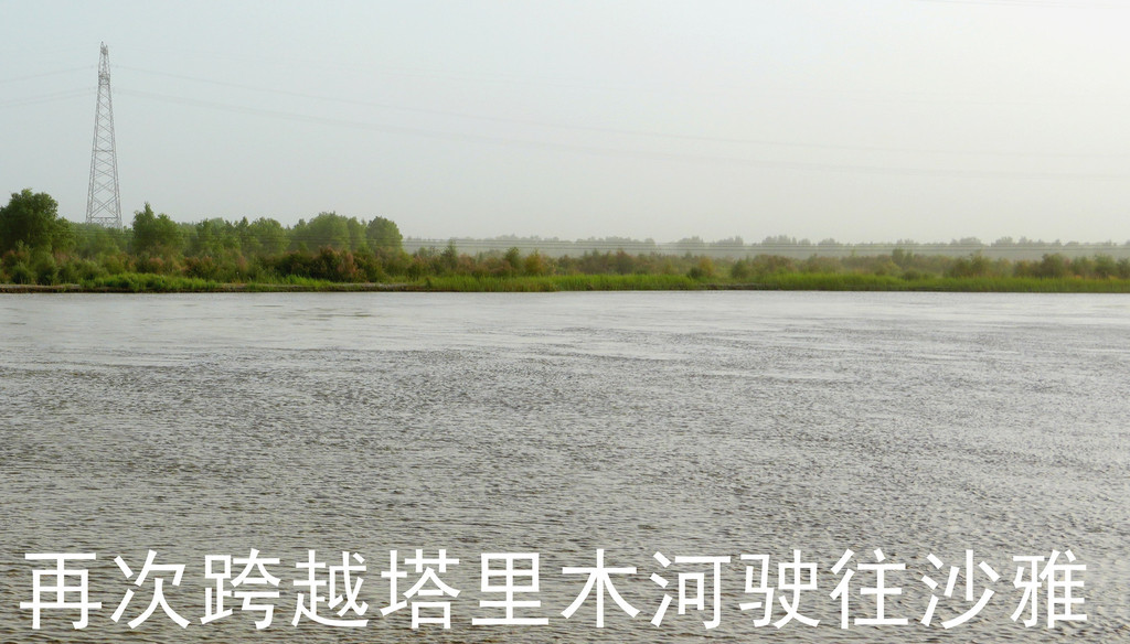 我们原计划是渡河以后,寻找一条能够直通河岸的便道,以便近距离地感受塔里木河。可车子驶出许久,始终都没发现通往河畔的岔路。无奈只好放弃原计划,调转车头向北折返。20:16再次驶过塔里木河大桥,直奔阿克苏地区的沙雅县。今晚将住沙雅,我们已在四星级的沙雅宾馆预定了房间。