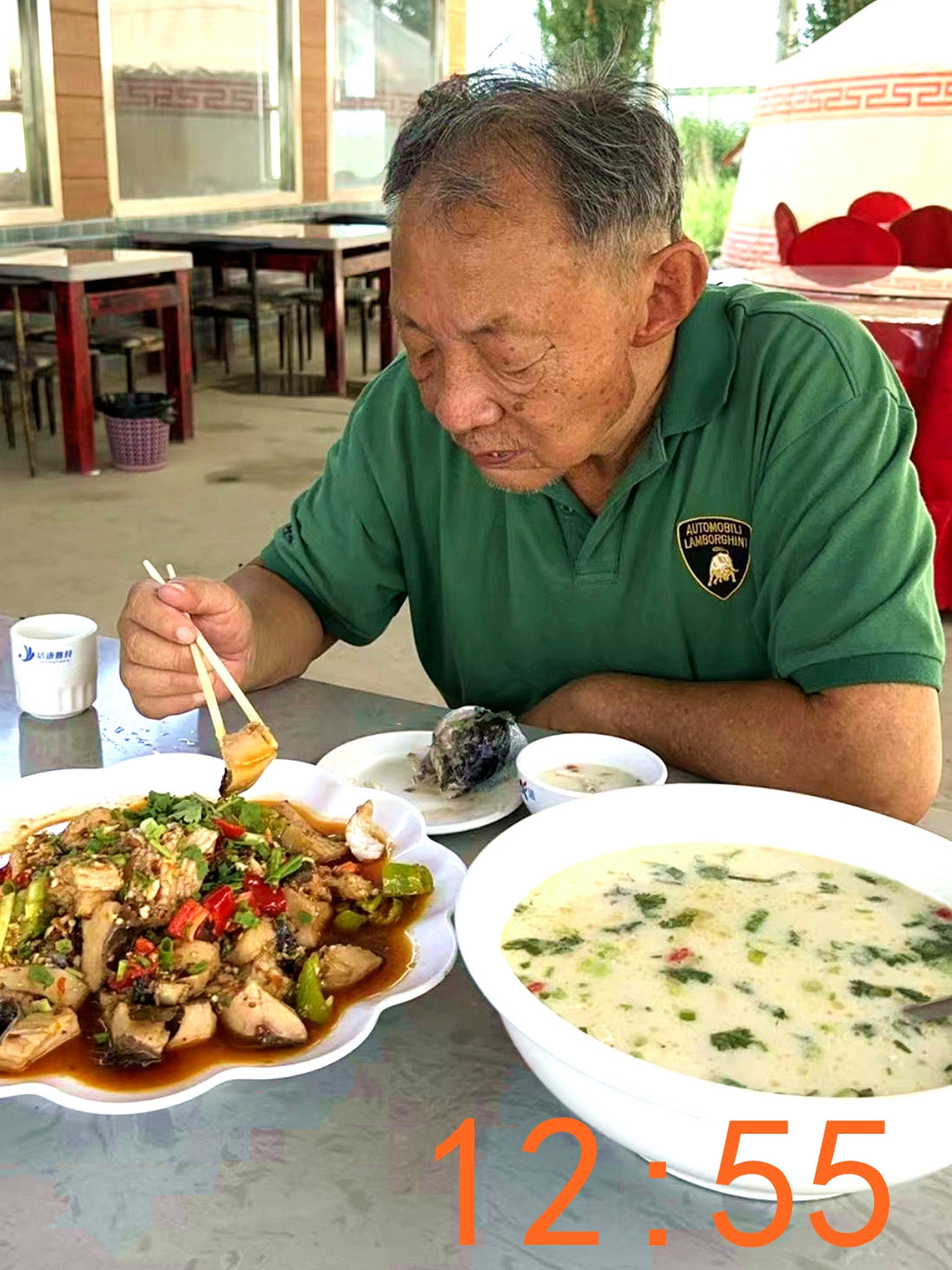 不过,这顿鱼宴背后还有个小小插曲。此次随儿子来新疆,行程中的一切都无需我操心,也无需我破费,儿子安排一切,也包揽全部开销。唯独是这顿鱼宴,是我自己执意要埋单。因为,按照X.J.的想法,我们原本是并不应该在这里吃鱼,鱼都个头太大,两人根本就吃不完,他很介意会造成浪费。可对我来说,能够品尝到博斯腾湖的鲜鱼,此生或许就只有这一次机会,即便是会有剩余,我也想任性一回,主动提出由我来埋单。儿子看我如此坚决,也就不好再说啥。