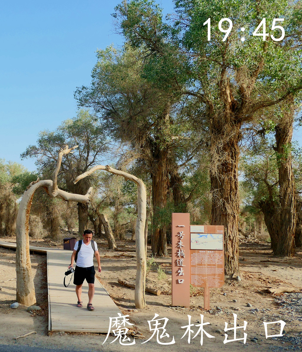 登上大巴车继续前行,19:30停靠“魔鬼林”景区。景区内也有环形栈道,我们这次是从入口进、出口出,漫步栈道走完全程。此地得名“魔鬼林”,大概是因为随处可见枯死的胡杨树干。这些枯木形态各异:有的笔直挺立,似坚守的武士;有的枝干舒展如鹰击长空,有的则如绽放的烟花散落,枯木枝杈凌乱堆叠,尽显荒凉与魔幻之美。
