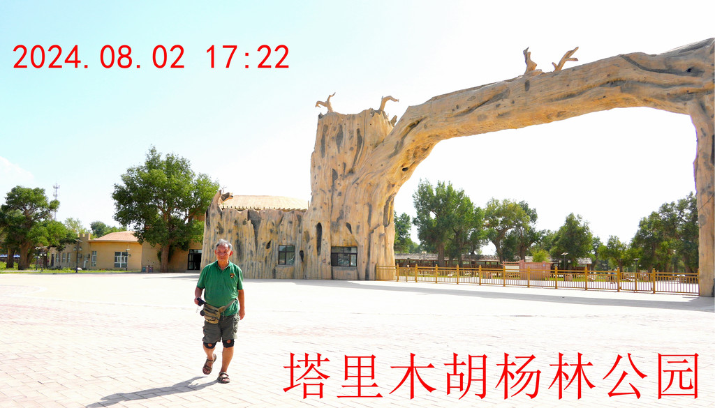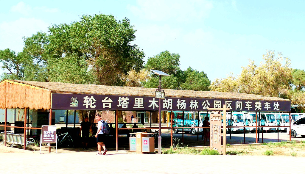 17:19抵达塔里木胡杨林公园。门票40元/人(我享受老人免票优惠)。园内观光车车票25元/人。据工作人员介绍,观光车游程大约需要2小时 20 分钟。