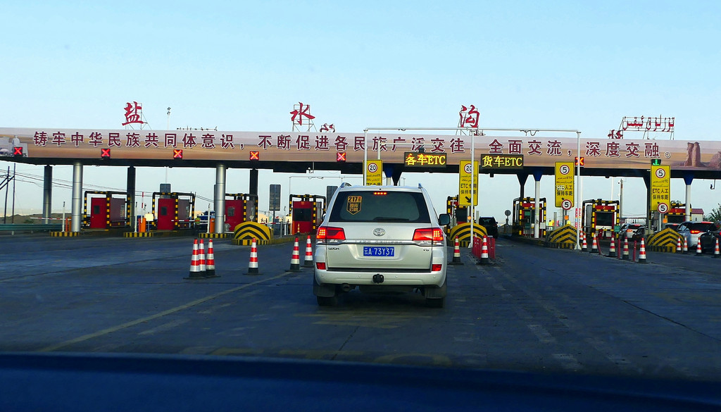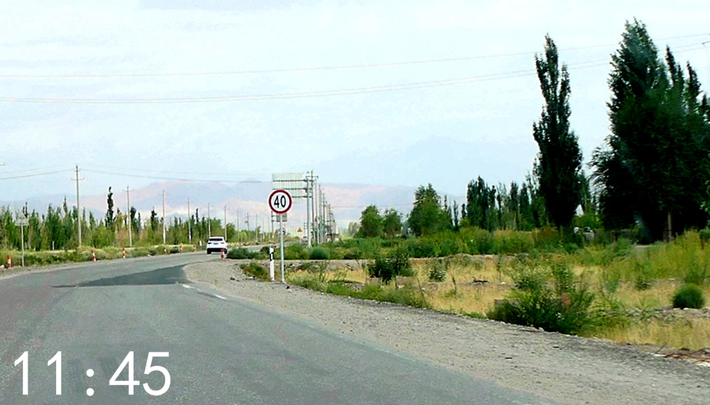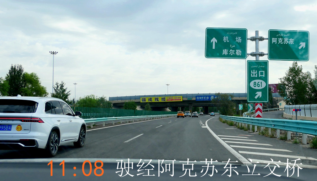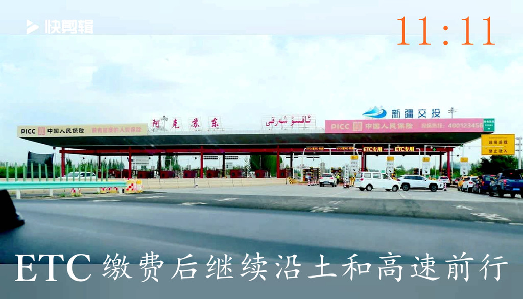 昨日行程750公里,X.J.一路驾车幸苦,今日相对比较宽松,接近10点方才起床,10:49驱车上路,首站温宿大峡谷。11:04经“阿克苏北”立交桥上土和高速,11:08驶经“阿克苏东”立交桥,11:11在阿克苏东收费站ETC缴费后,继续沿土和高速前行。