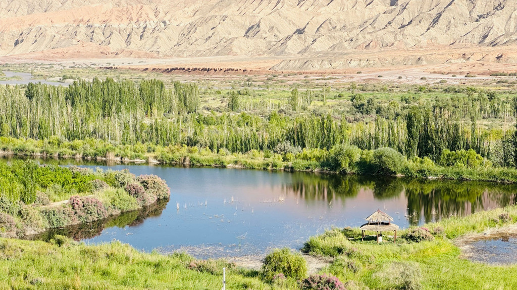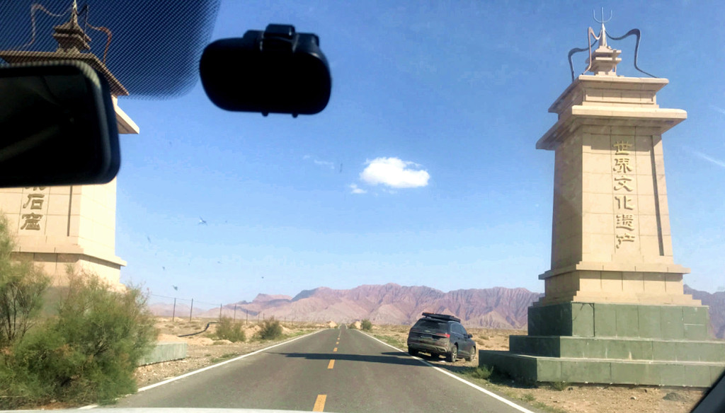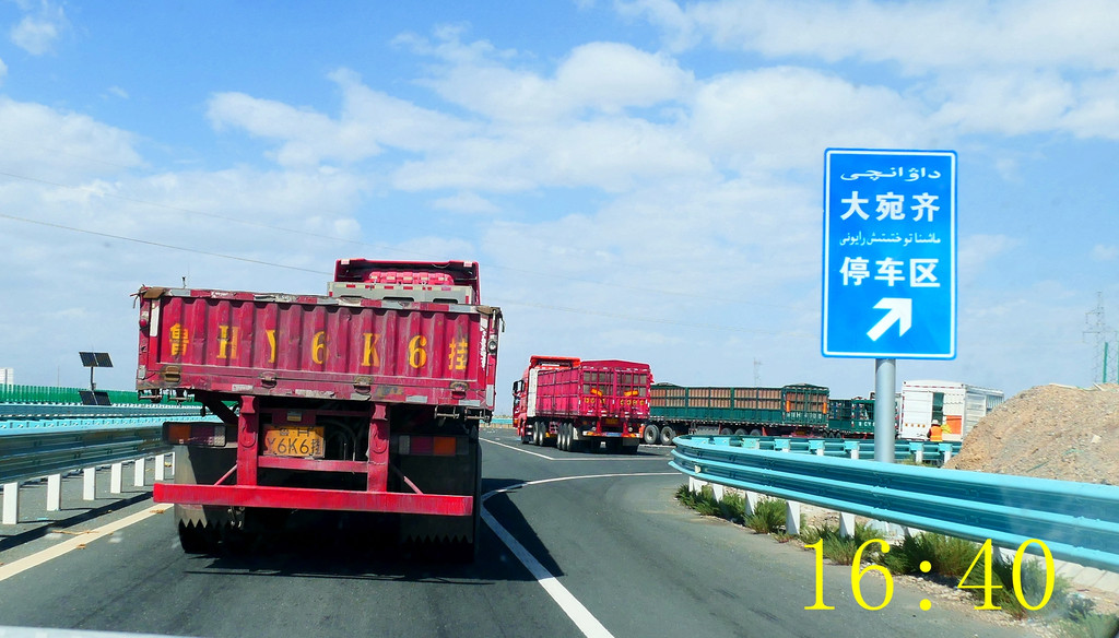 16:40驶经“大苑齐”停车区,啥都没有,只是一片空地,我们直驶而过。17:57驶经拜城县克孜尔乡,18:16抵达克孜尔千佛洞。