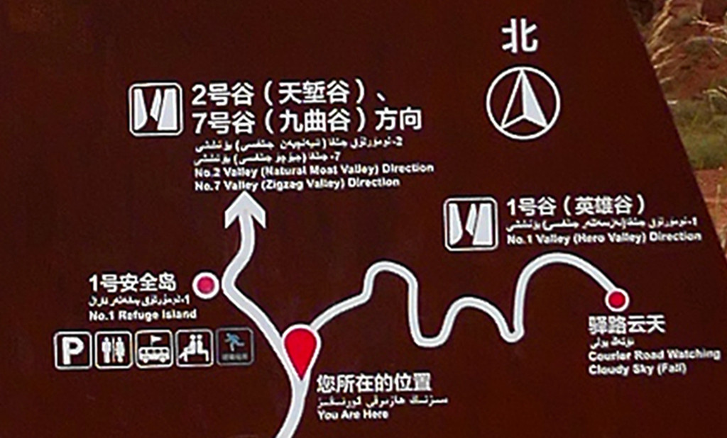 景区内的沟谷布局就好像是一颗大树,主谷称“库都鲁克峡谷”,它好比是树干,最初非常开阔,越往里走就变得越窄,而且开始分叉,出现了十数条支谷,支谷又再分叉,成为百多条小谷,沟壑交错,迂回曲折,好似迷宫一般。景区门票:36元/人,区间车60元/人。我因年龄免门票,但需购买区间车票。