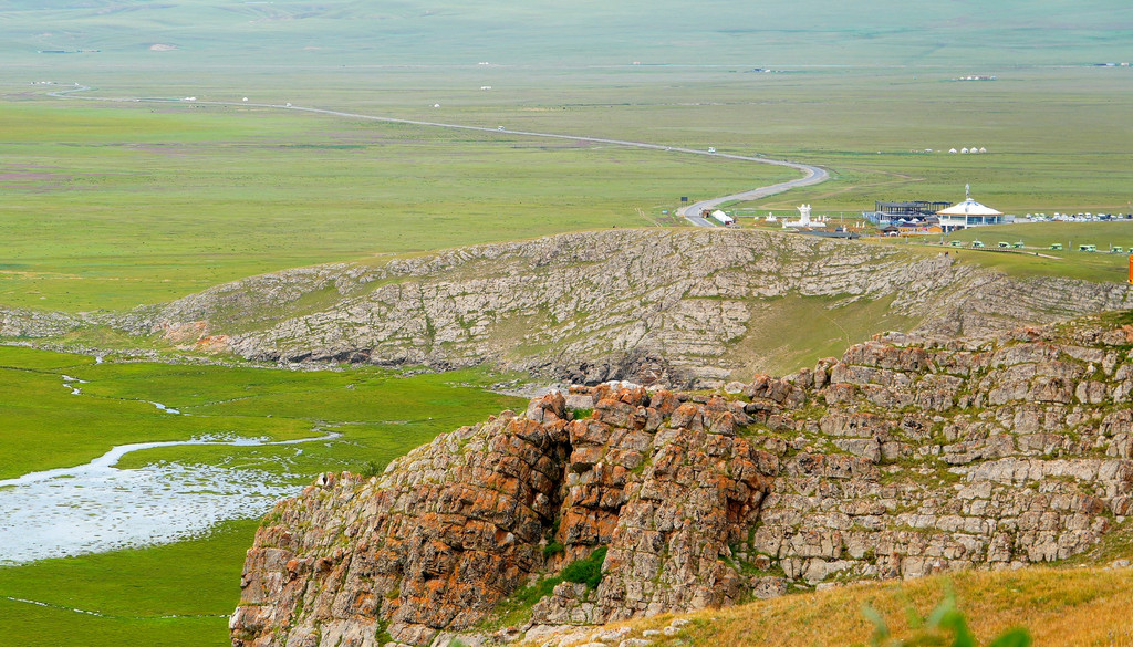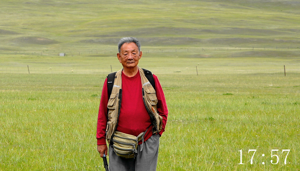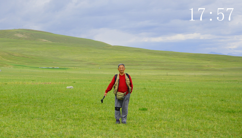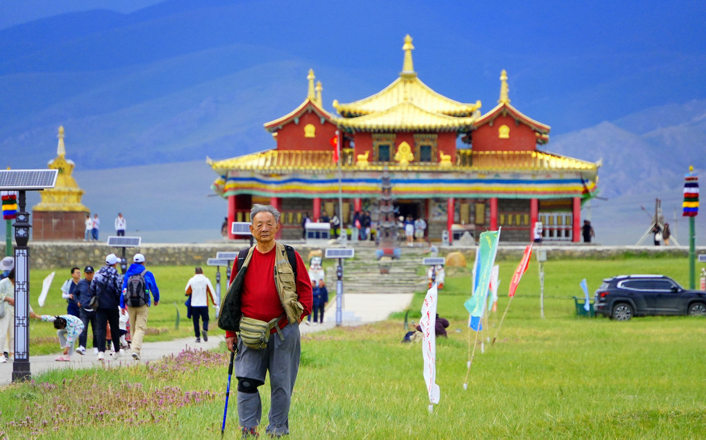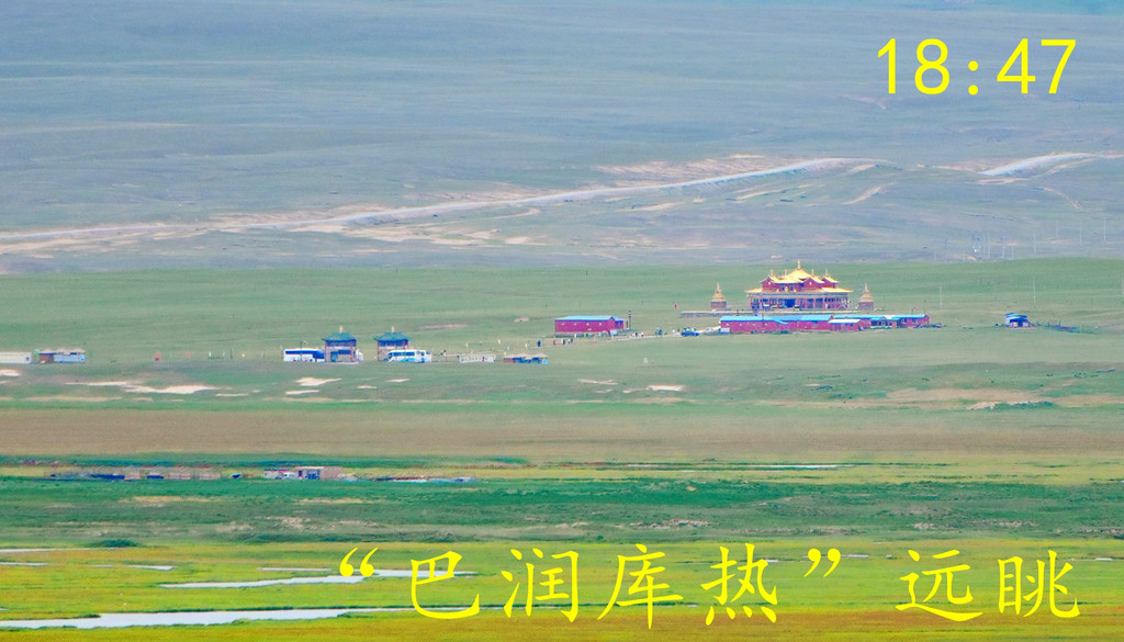 区间车停车场距离“巴润库热”较远,X.J.对寺庙毫无兴趣,坚持不肯前往观光,我只好让他利用长焦镜头,远远地为我拍张打卡照片。“巴润库热”地处辽阔草原,我也让他为我拍下一张难得之大草原留影。