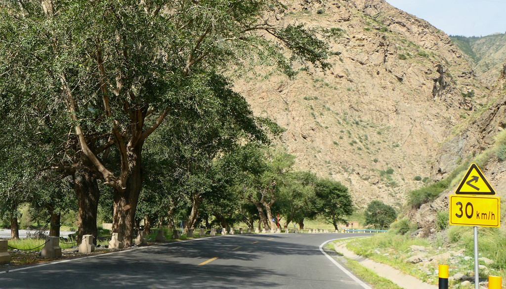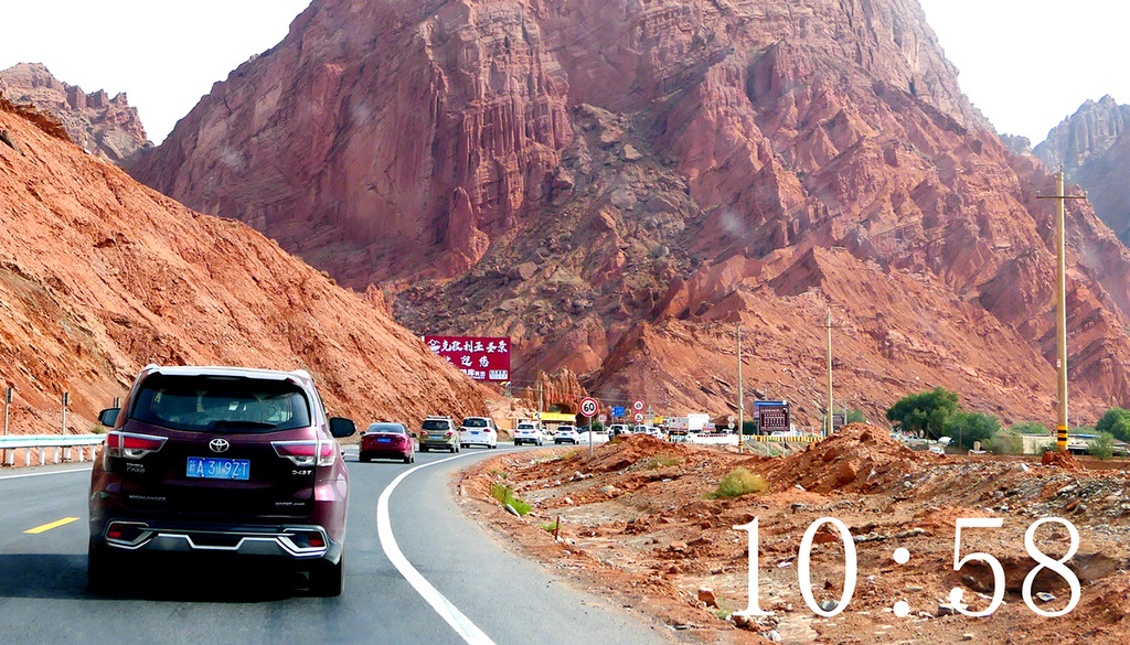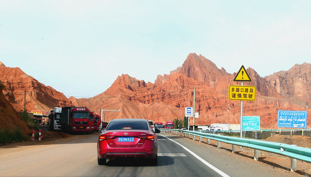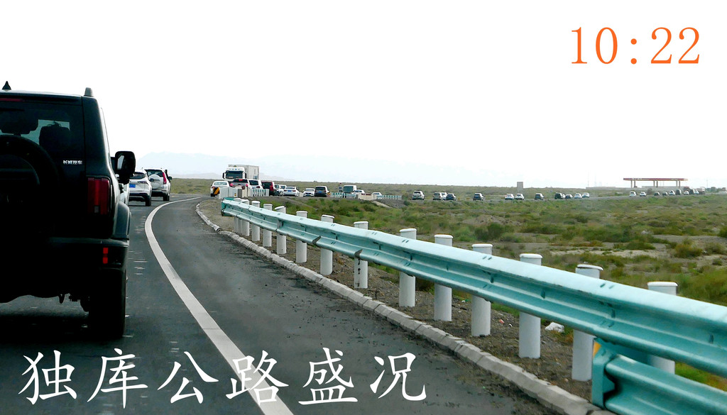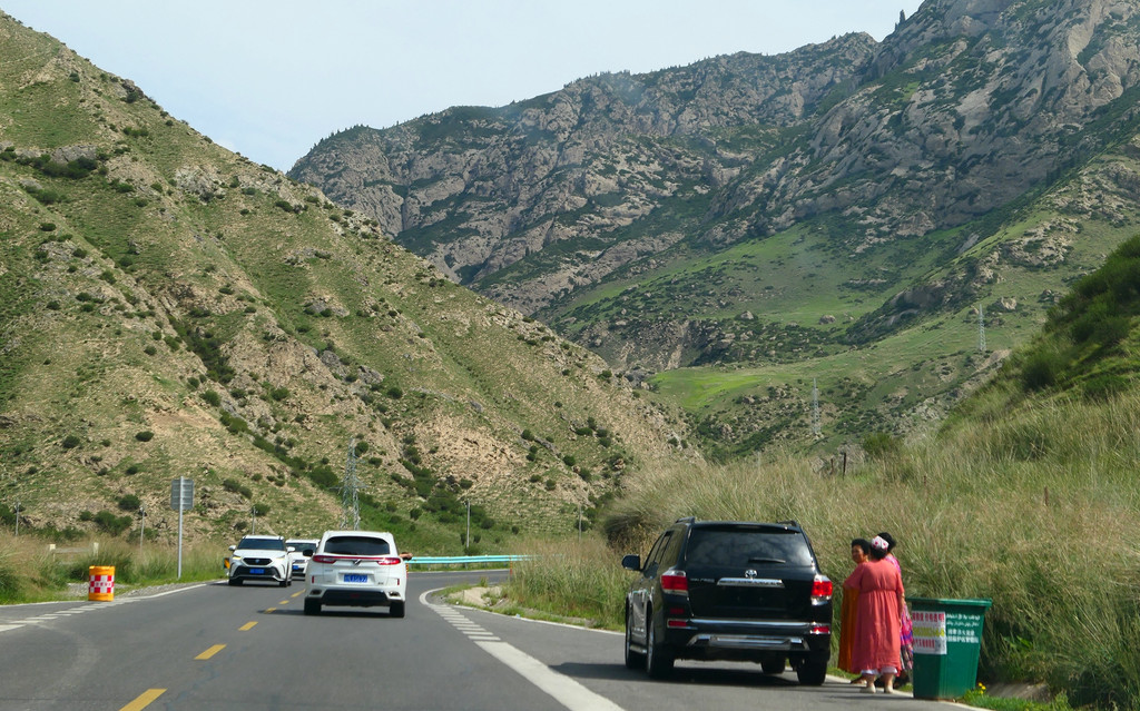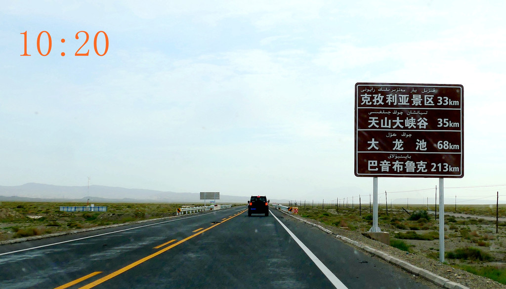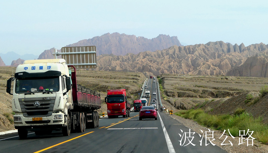 虽说已抵天山腹地,但此刻所见还大多都是平原,也有一些山岭,但普遍都不算太高。道路也是十分平直,车来车往络绎不绝,盛况堪比大城市中的繁华马路。有些路段道路笔直,又遇上坡,远远望去就好似波浪公路)。