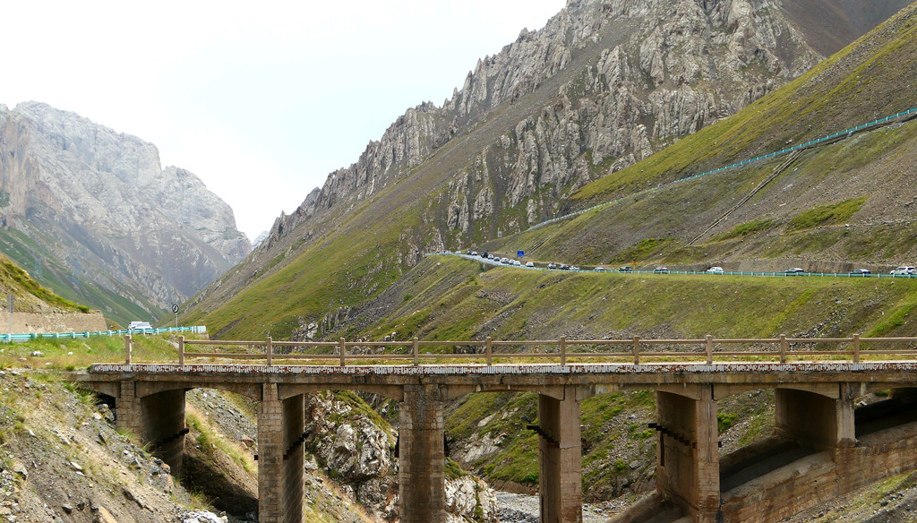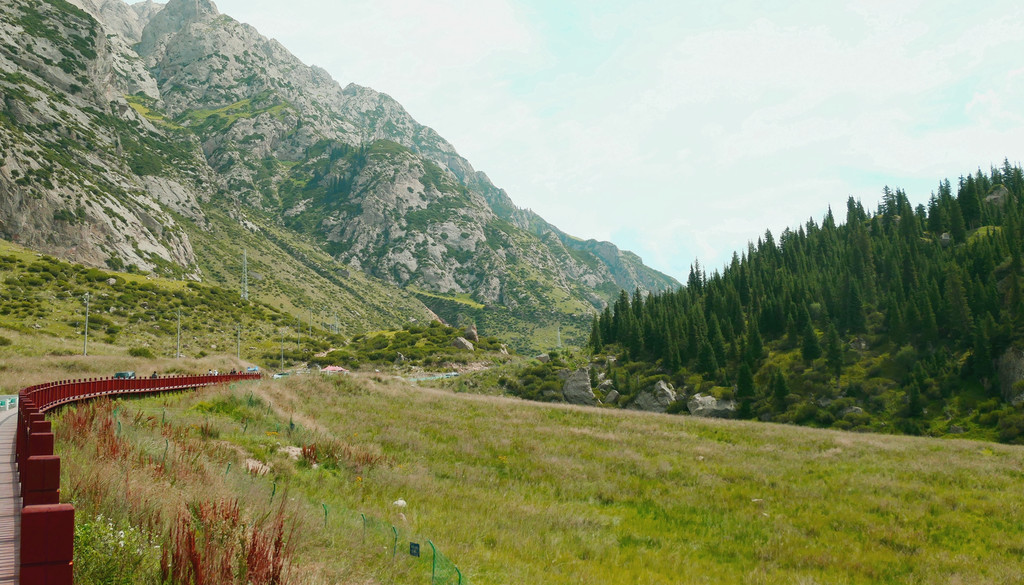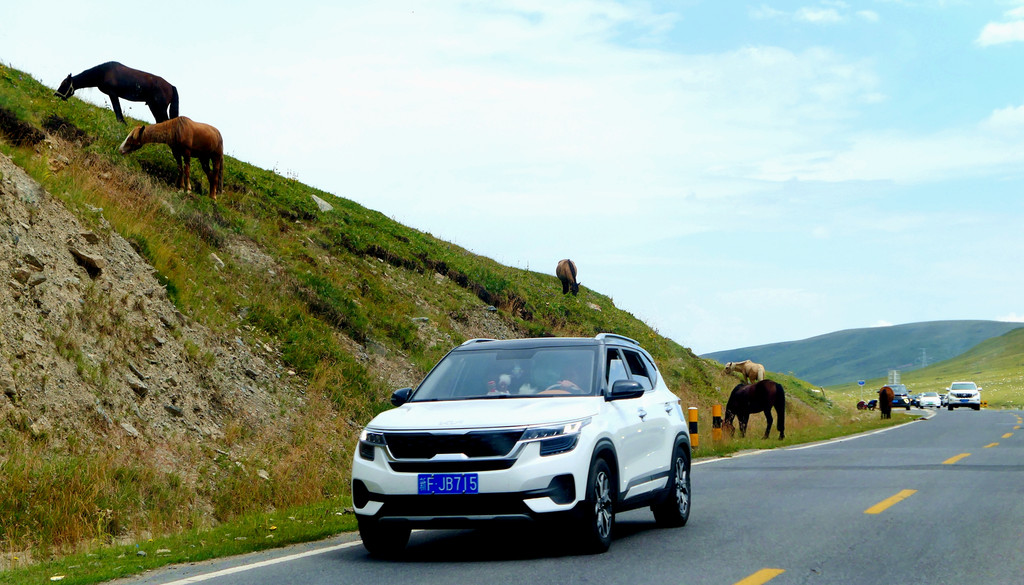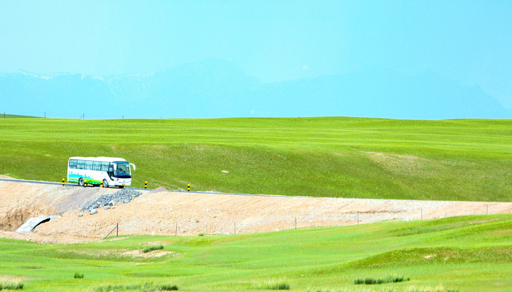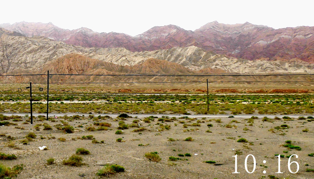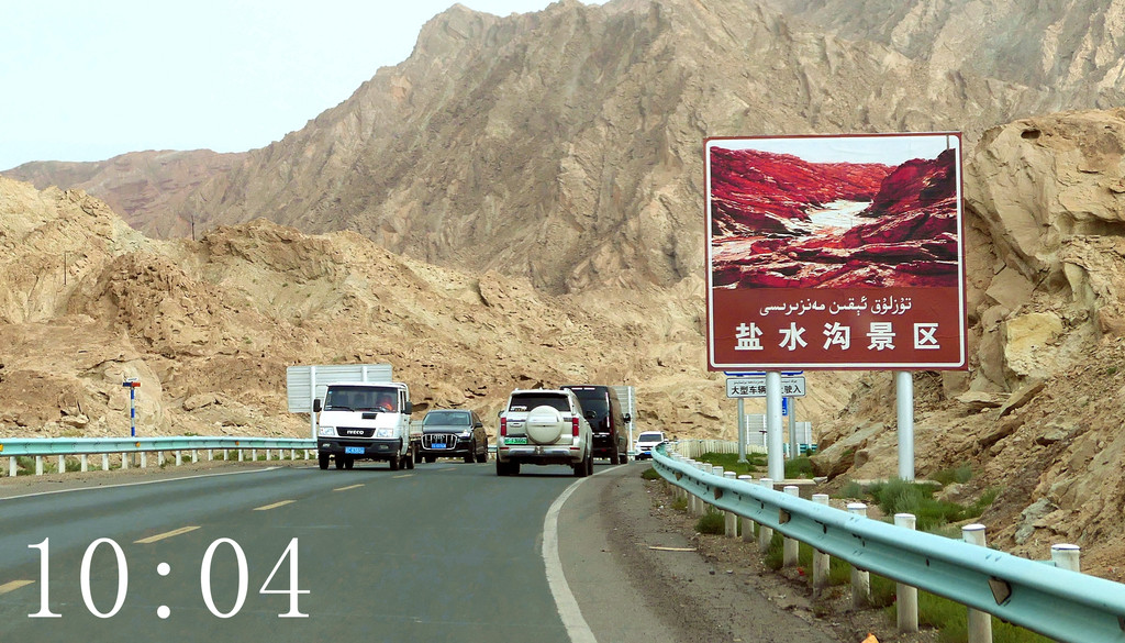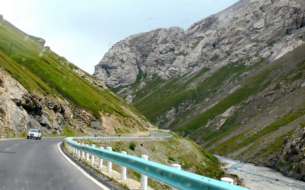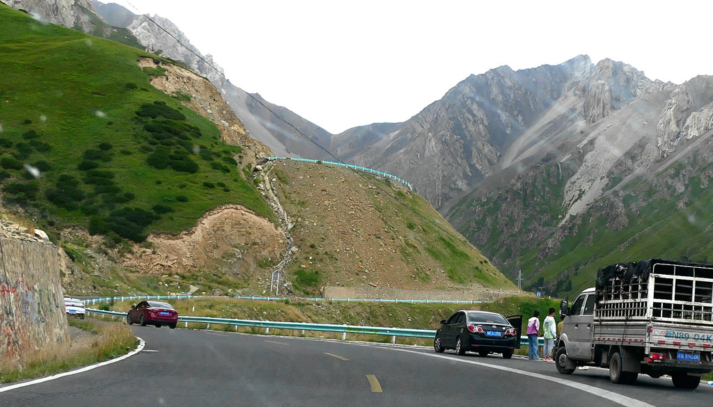 虽说已抵天山腹地,但此刻所见还大多都是平原,也有一些山岭,但普遍都不算太高。道路也是十分平直,车来车往络绎不绝,盛况堪比大城市中的繁华马路。有些路段道路笔直,又遇上坡,远远望去就好似波浪公路)。