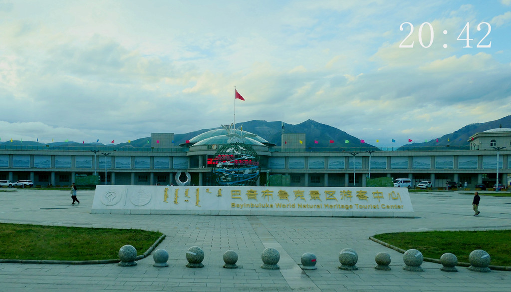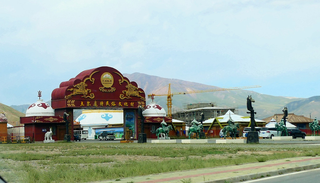 16:01驶经“土尔扈特民俗文化村”,它是国家AAA级景区,也是一家以蒙古包型建筑为特色,集住宿、餐饮、演艺为一体的家庭式别墅酒店。16:04,驶抵巴音布鲁克景区游客中心。
