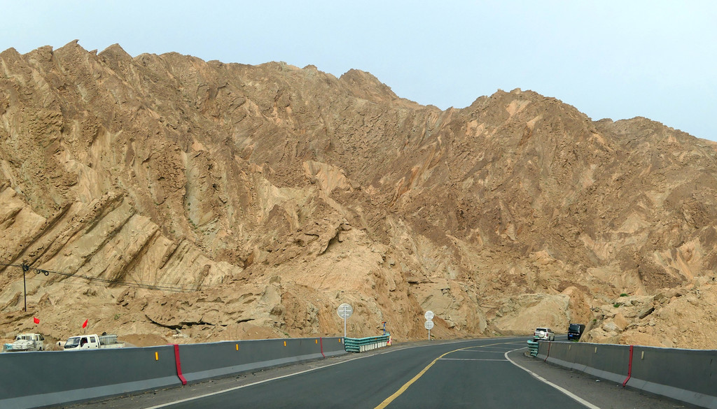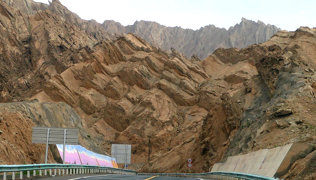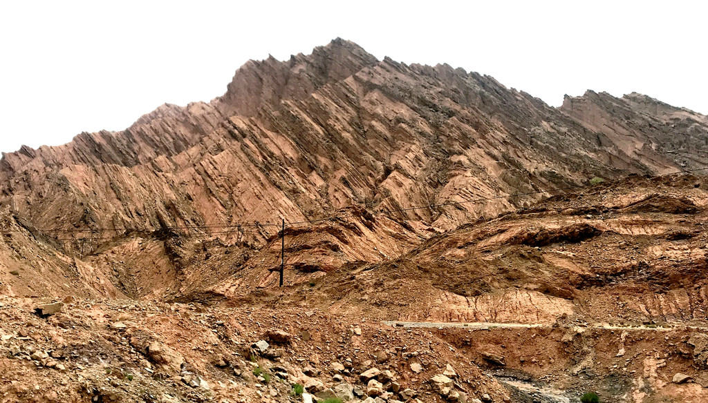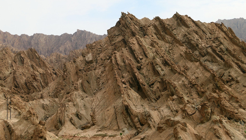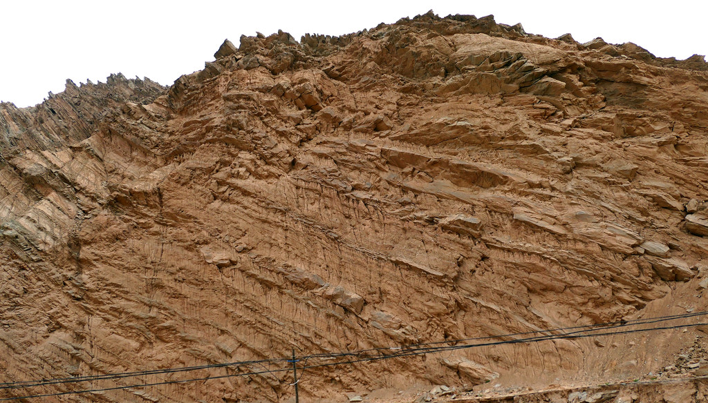 亿万年地质运动的挤压,在山体上雕琢出独特形状的褶皱,层层叠叠、纵横交错。薄片状的岩层堆积宛若巨大拿破仑蛋糕,感觉很是有趣。荒野虽显苍凉粗犷,但却也有一番雄浑之美。