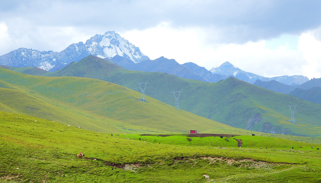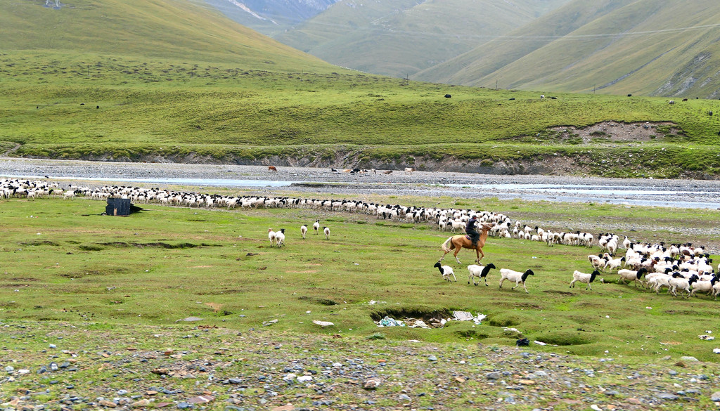 巴音布鲁克草原是蒙古族牧民世代相依的天然牧场,它仿佛是大自然编织的美丽锦缎,在我们眼前徐徐地铺展开来。我们驱车一路疾驰,随处可见牛、羊、马匹,它们就好像是天上的繁星,星星点点散落在广袤无垠的绿野之上。草原上的毡房,牧民骑马挥鞭的身影,还有正在悠闲啃食青草的庞大羊群,全都在向我们演绎着蒙古族牧民逐水草而居的古老生活图景。与此同时,现代之风也已悄然吹入,不少毡房外停放的汽车便是鲜明例证。近处的翠绿草原与远方洁白雪峰相互映衬,巴音布鲁克的美景着实令人陶醉。