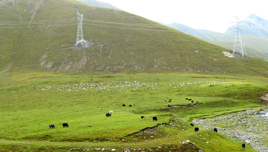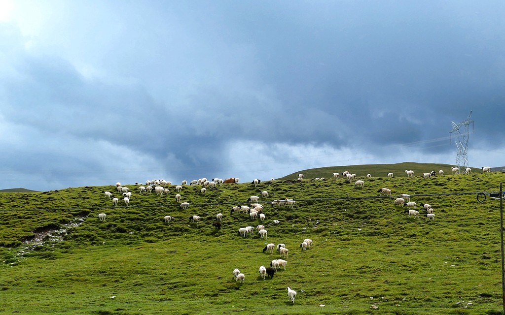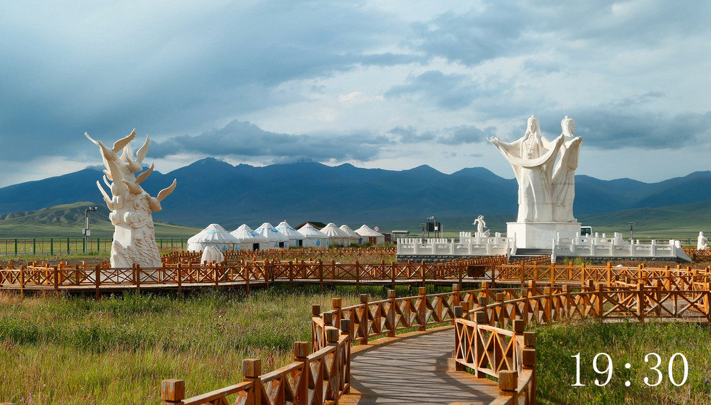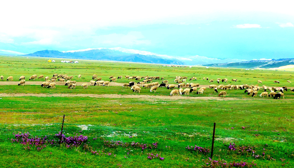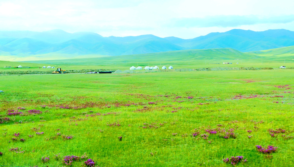 16:26乘坐区间车进入景区,感觉就好似进入了广袤无垠的绿色海洋,成群的牛、羊、马匹又为草原增添了勃勃生机,还有白色蒙古包与不知名的紫红色野花。大美草原好似有一种魔力,它能让人忘却尘世间的烦忧,沉醉在这宁静祥和的天地之间。