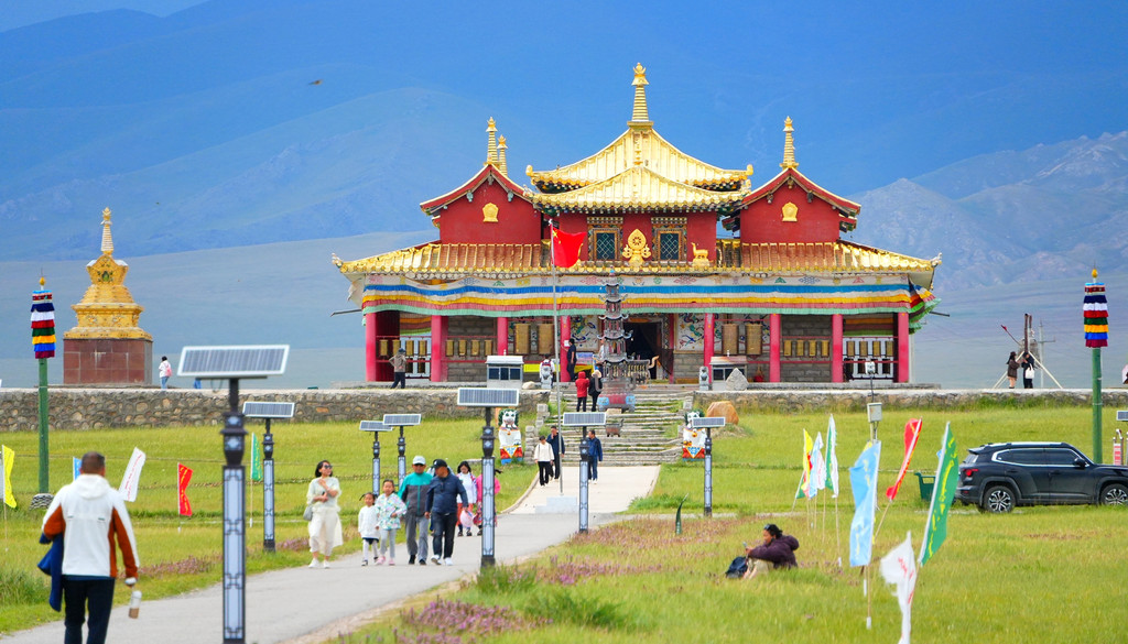 现如今,新时代的牧民都已定居下来,于是,2008年经高僧选址,2011年建设完工,“巴润库热”也华丽转身,成为眼前金碧辉煌的模样。与此同时,蒙古包寺庙随季节而迁移的历史,也随之终结。K