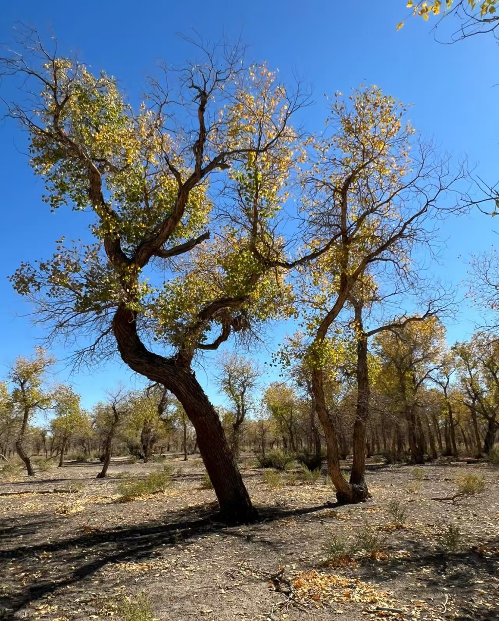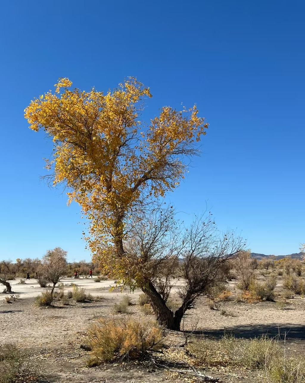 新疆的天是真的很蓝,不过我们来的时间还不是胡杨黄的季节,所以没有拍上最美的风景,大概再过20天这里会举办胡杨节,据说那时候的胡杨最好看,有无人机的一定要带上。由于这次出行带着老人和孩子,下一站行程又太远所以我们决定返回县城找地方休息。