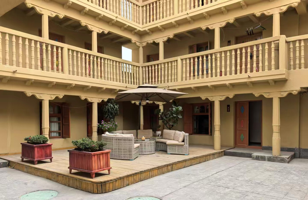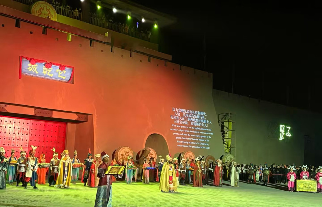 晚上我们去它乾城看了表演,是大型的室外情景演出,历史韵味很足,就是夜晚气温很低小孩老人需要穿外套。回到酒店前台还给我们准备了了小朋友需要的婴儿浴盆和睡前读物,我觉得在一家小县城有这样的服务真的是很难得。舒舒服服的睡一觉,我们继续一路向南,下一站和田!