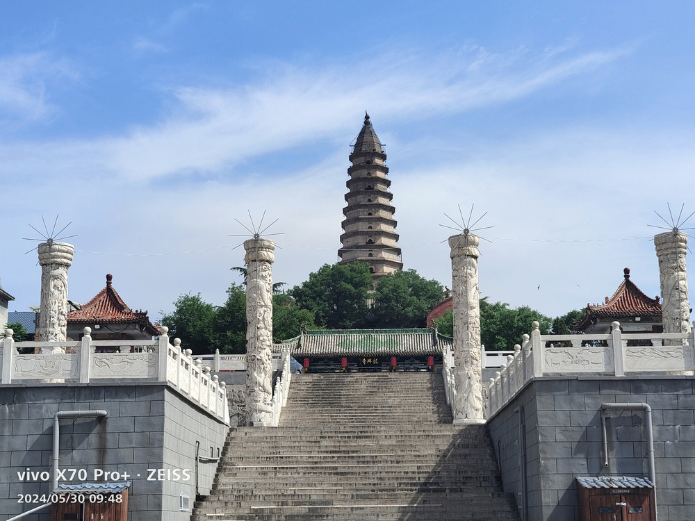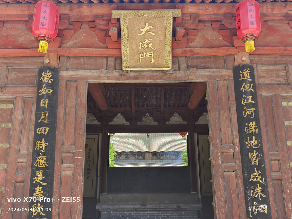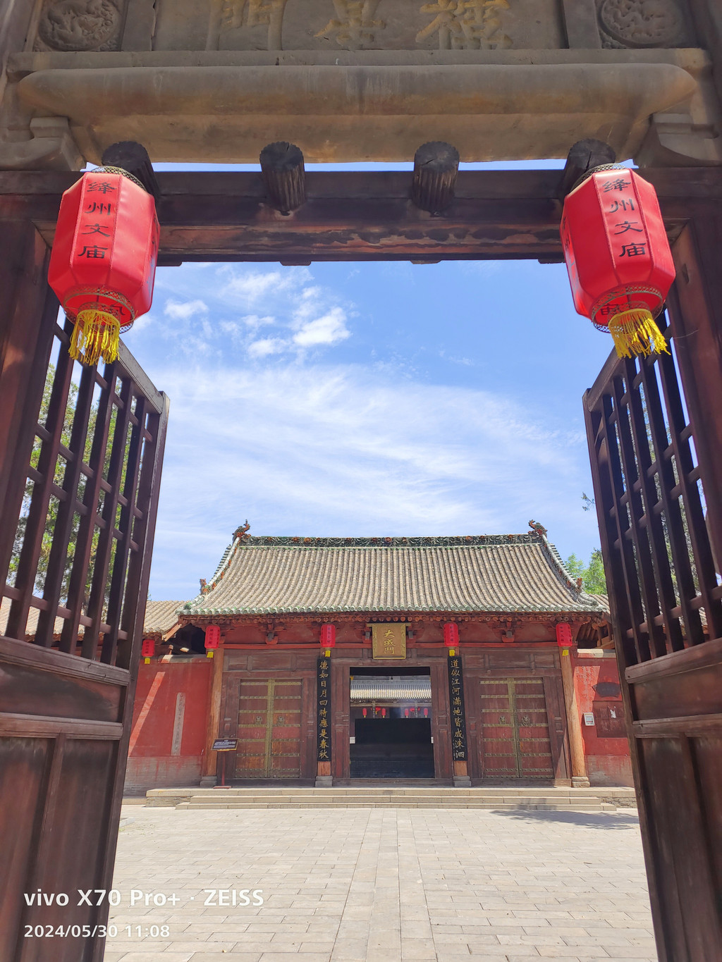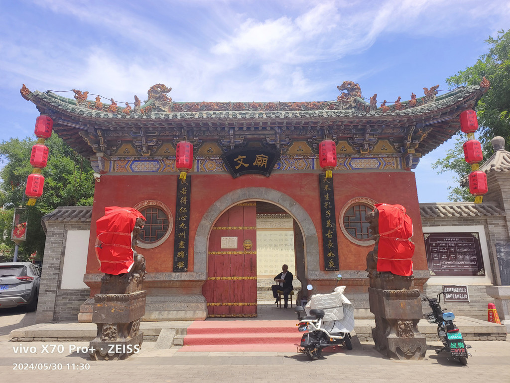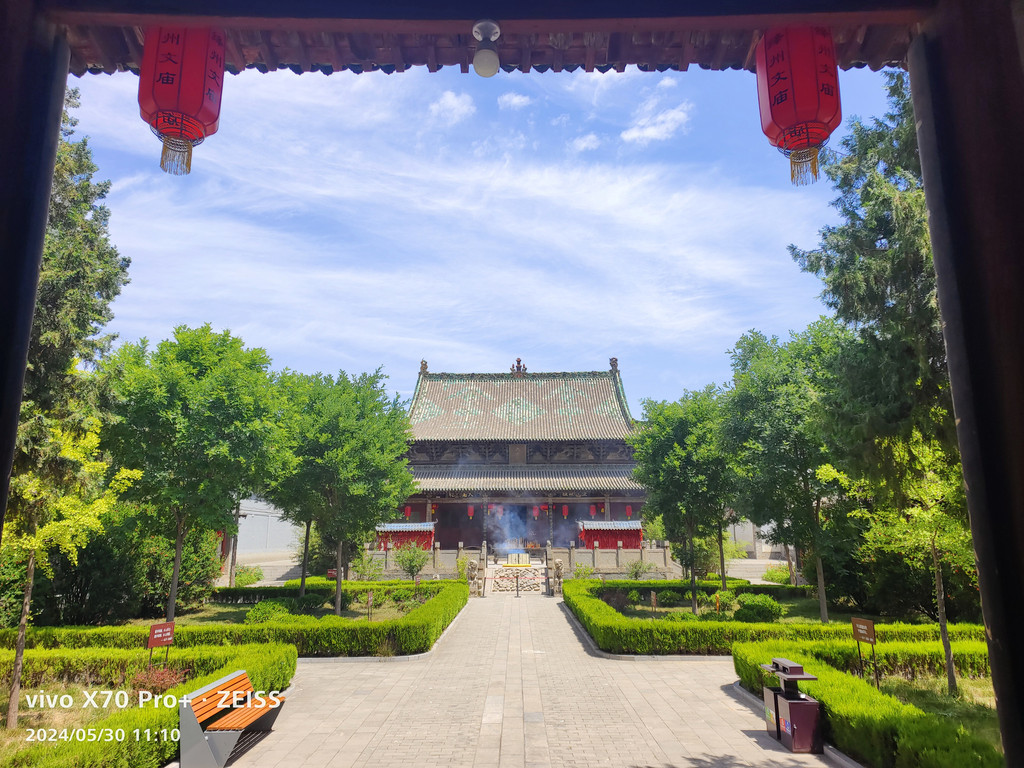 由于龙兴塔其神秘的现象,才使得来观赏的游人络绎不绝,但是真正能看到的几乎绝无仅有,我们当然也没有这么幸运。上午11点我们结束龙兴寺的游览,步行去距离不远的新绛文庙。新绛文庙,位于新绛县城内四 府街,系山西省重点文物保护单位。占地面积一万零六百七拾平方米。创建年代待考。据庙内存宋人集刻晋右军将军王羲之书碑《重修夫子庙碑记》记载,推断文庙至迟为宋代所建,以后元、明、清屡经增修,是一处很有特色的古建筑群。反正天下文庙几乎都是一个样子,都是纪念尊崇孔子的场所。半个小时的时间,我们就看完,出来一路往西,那边还有基督教堂,隋代花园,绛州府衙等景点等待我们的光临。