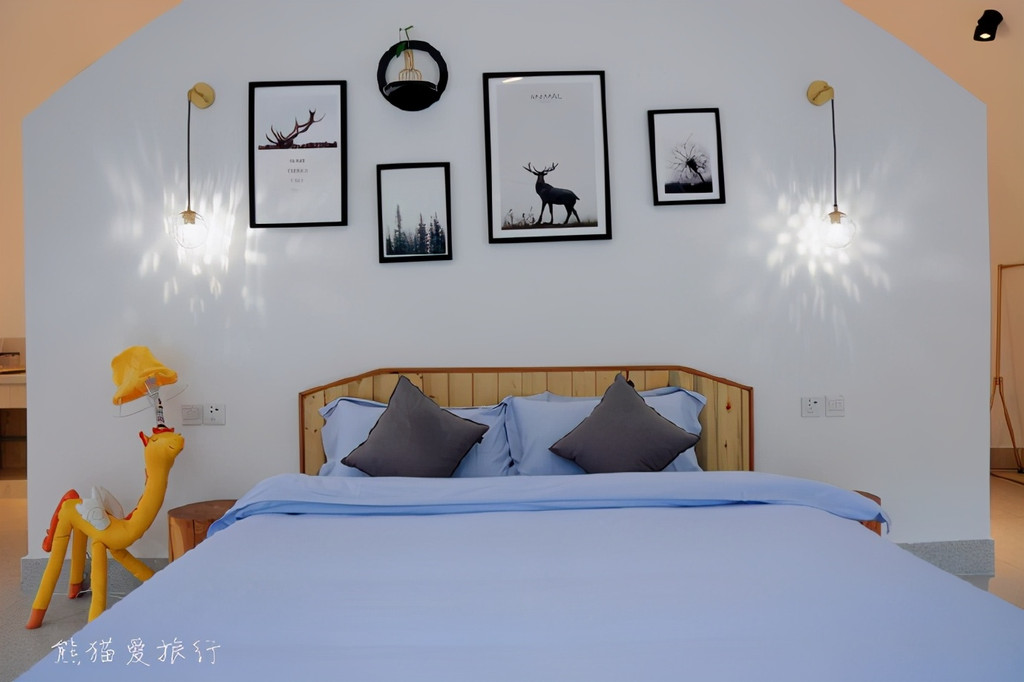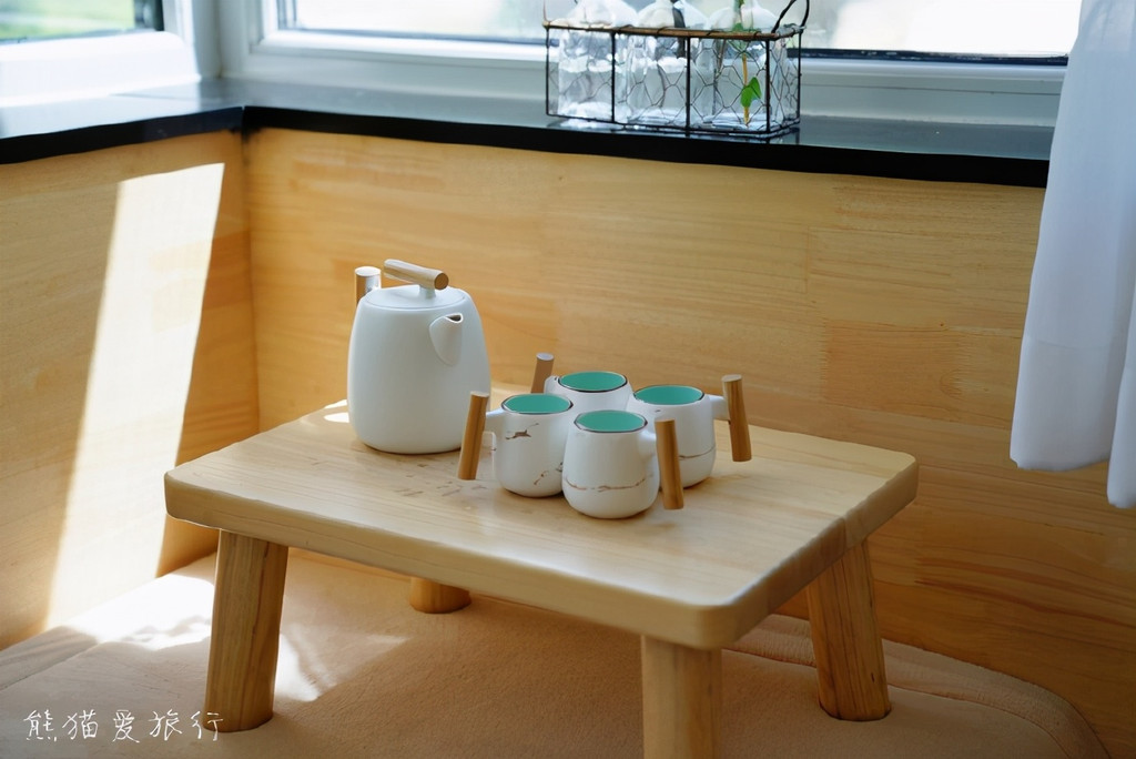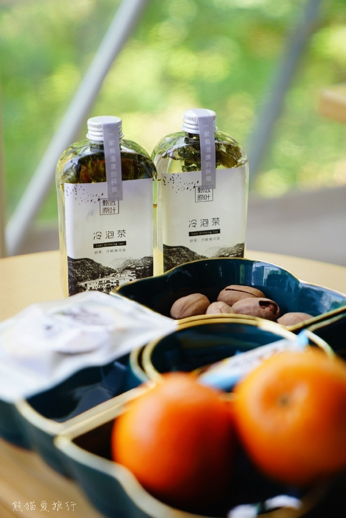 泡泡屋山脚下的白色院落是江南风的度假别院,外部设计是徽派建筑风,27间客房以节气命名,几乎都有阳台,一层的房间还有庭院,很适合亲子家庭。我入住的寒露拥有整面墙的落地窗,午后睡在舒服的大床房上,阳光透过纱幔光线轻轻洒进房内,窗外清风徐徐,鸟鸣悠悠,让人随时随地都能放松得睡着。