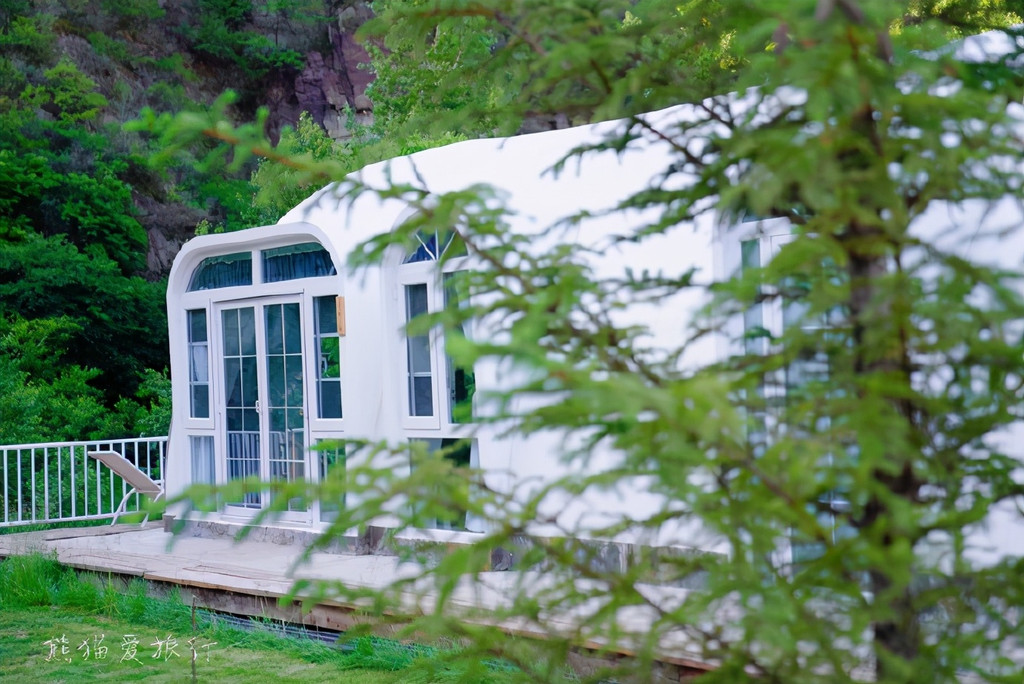 距离度假别院不远处有一片白色建筑群落,中间围合住一片大草坪,四周分布着山楂树下度假私墅&星际太空屋,其中4栋私墅,每个都拥有3间客房,一层有独立庭院休闲区,二层有大面积室外观景露台。造型奇幻的太空屋,绝对让人一住难忘,270度半圆形大面积落地窗,置身屋内就能感受到森林的光影。住在这个区域,还可以坐在屋后的小沙滩躺椅上发呆,看孩子们在安达木河的小溪流里玩耍。