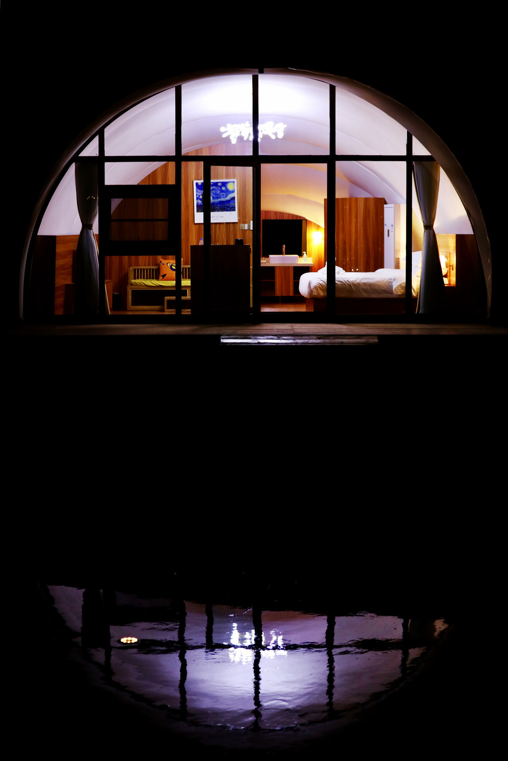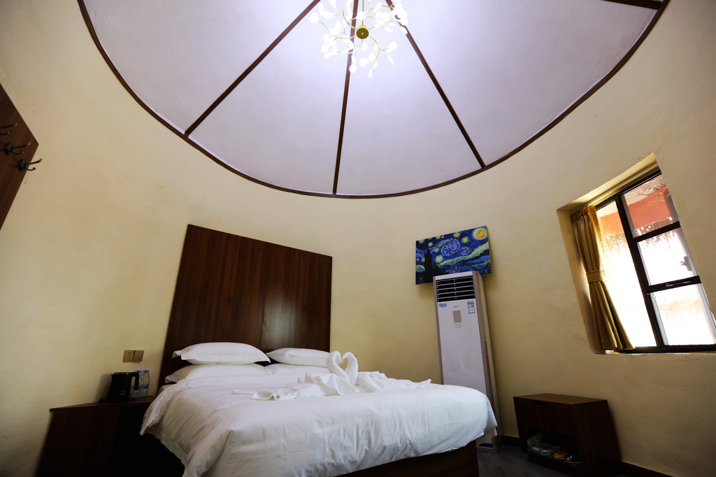 我入住的是贝壳房,室内原木色家具及温暖柔和的灯光,一扫传统营地条件艰苦的既有印象,房间设计简约大气,将舒适发挥到了极致。从窗口看景色能感受星星从远处推向更远处,晚风把雾气从一扇窗吹向另一扇窗。