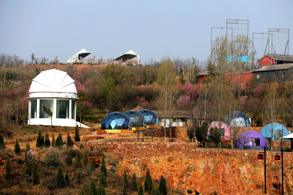星空营地位于伏羲山红石林景区内,视野极为宽阔,作为小众景点,这里拥有着不被打扰的美好世界,是伏羲山上的另一片净土。星星、银河、一颗在路上的心,就是星空营地最美的样子。营地排列着玻璃房、贝壳房、石头房、太空房等6种不同风格的23间星空主题客房,屋顶配备遥控天幕,夜晚躺在床上,抬头就可以看见满天繁星。突然间就想到中学课本里张岱的那句“天与云与山与水”,星空营地恰好可以满足你“大自然天云山水看星星”的美好愿景。