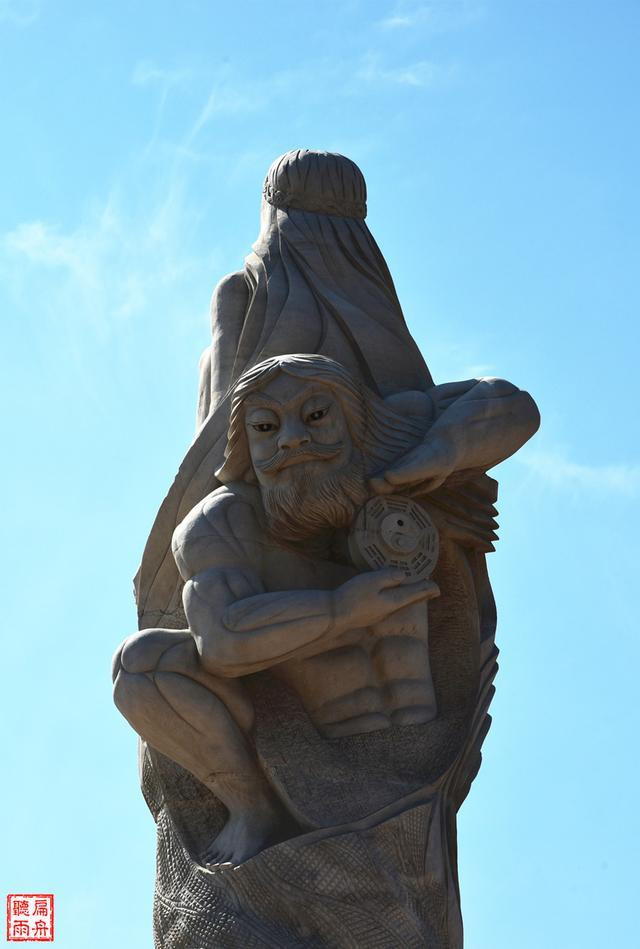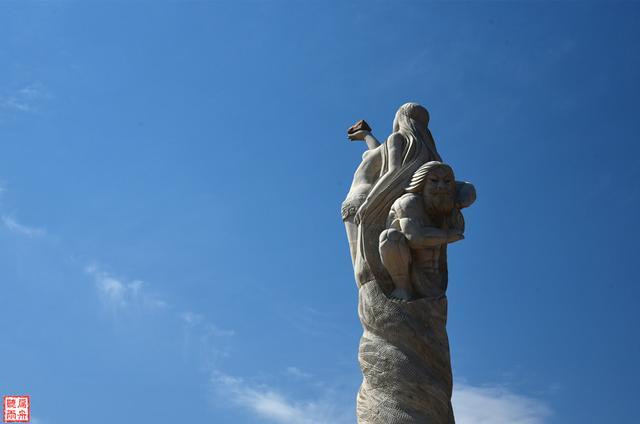 南天门和伏羲宫之间,是一个偌大的伏羲广场,广场中央是一尊簇新的雕塑,雕塑的人物不仅仅只有男神伏羲,还有阴阳共生的女神女娲。