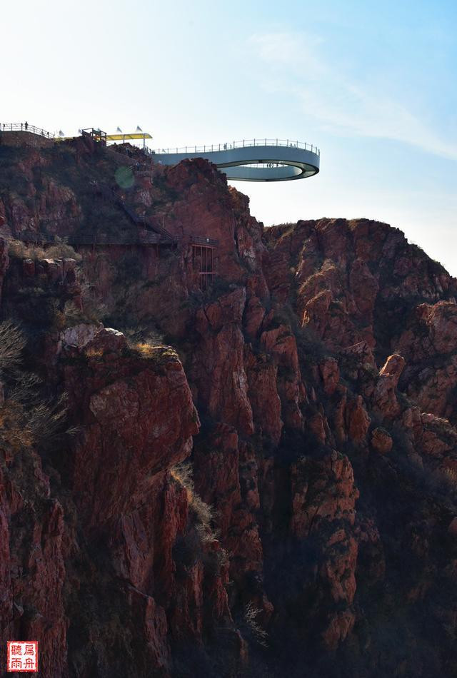 红石林景区另一独特之处,应属据说是现时最大的环形玻璃廊桥,玻璃廊桥伸出悬崖30米,距离崖底360米,如果天气合适,会有一种空中行走云中漫步飘飘欲仙的感受。