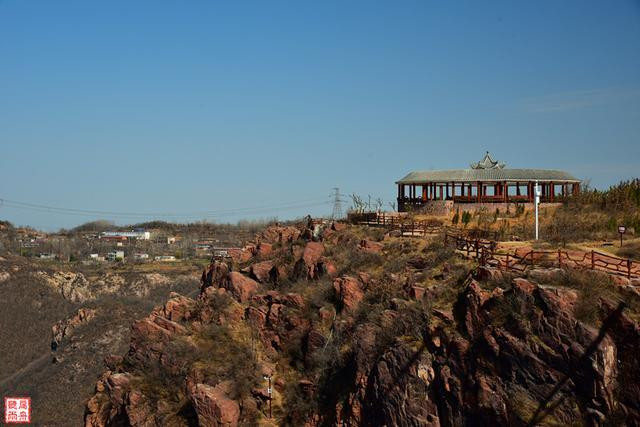 来已来了,总不能败兴而回。继续驱车向山上攀爬,沿着盘山公路行走六公里,即是山顶的红石林景区。红石林景区位于尖山风景区管委会的尖山村和牛心石村,是伏羲山中的一个独特景区。
