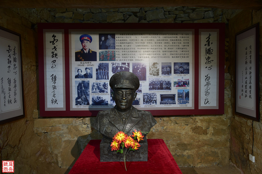 抗日民主政府和“皮旅”的司令部都是石头一砌到顶的石房石窑,相挨着坐落在一条长长的山沟里。五间连通的石窑就是即是皮定均司令员的宿舍,也是司令部的作战室、机要室和指挥部。