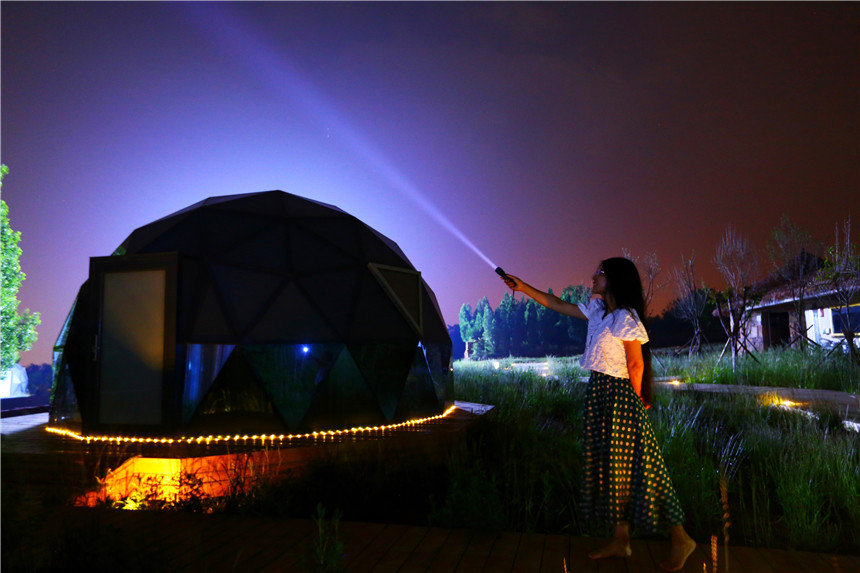 夜幕降临的星空营地,风声、鸟鸣、虫叫,走出玻璃屋,用手电点亮这个美好的夜晚,定格下自己的身影,原来在我们生活在这片土壤上,还有很多桃花源,等着我们去遇见,去发现。
