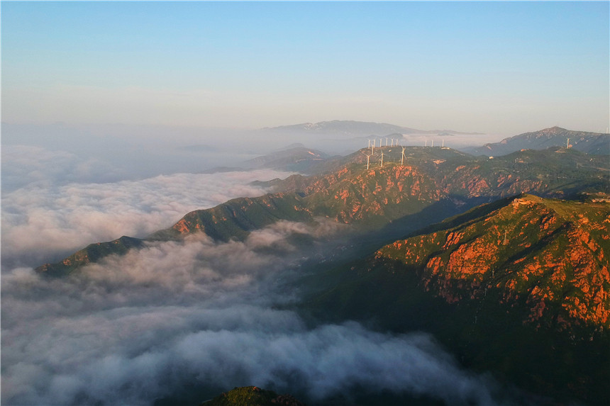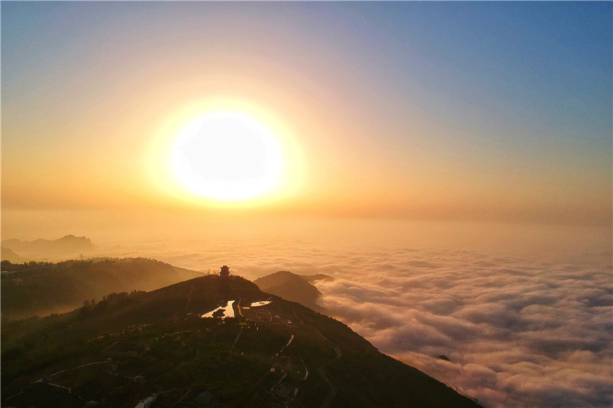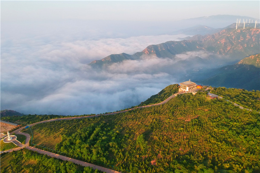 我在五点的鸟鸣声中醒来,用我的无人机,飞高三百米,去俯瞰伏羲山的风景,云雾流淌在山谷之间,伏羲山地形为西北高,东南低,三面环山,冬天可抵挡寒冷西北风,夏季凉爽的东南风又可长驱直入,夏天来这里度假,不仅很清凉,遇到云海日出的几率也很高。