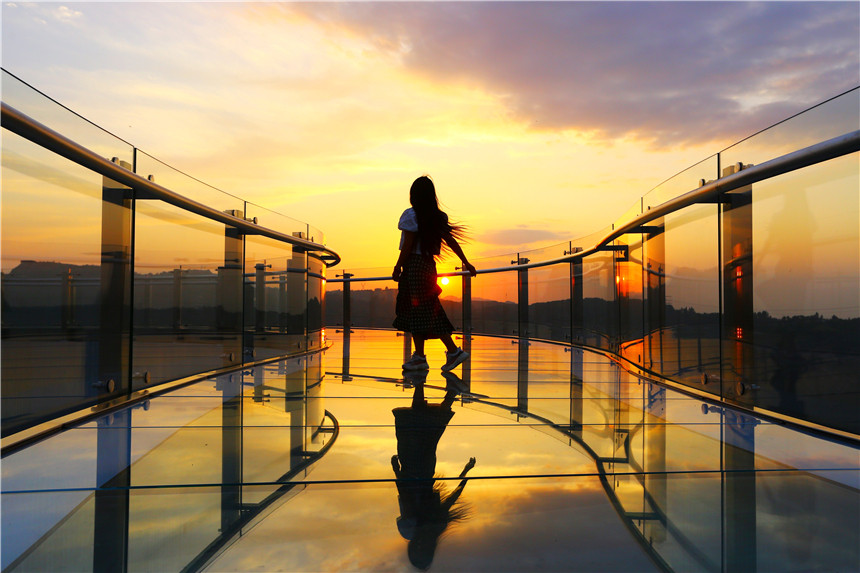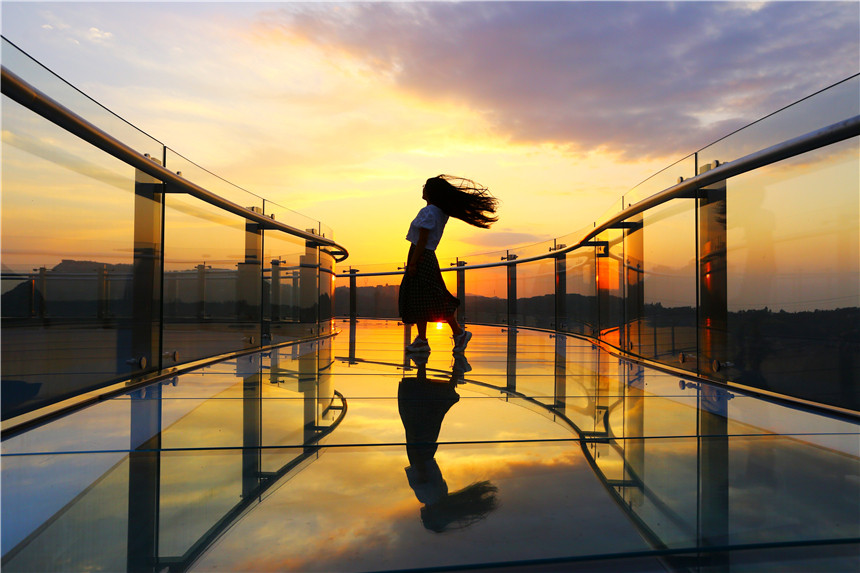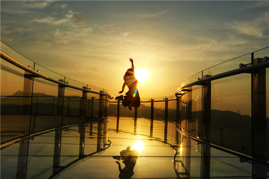 这次伏羲山旅行,真的是一次运气爆棚的旅行,日落时分的伏羲山,天空漫步玻璃环廊是拍摄人像的最佳摄影点,把自己的身影定格在最美的夕阳里,是初夏时节的小欢喜,是生活平静处的小满足。