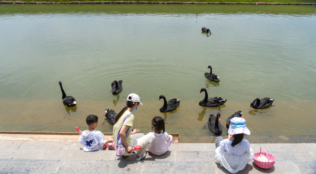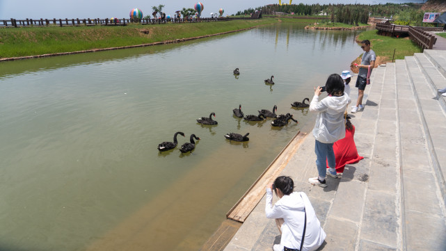 云上牧场的天鹅湖,也是人与动物的乐园。在艺术馆一侧是片湖,水里游着几只黑色的家伙。看到天鹅湖名字以为是白天鹅,走进,看到的是几只黑天鹅。