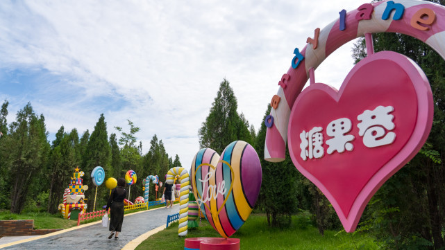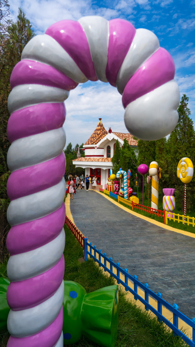 这是走进景区后第一个看到的景点。孩子们最爱的糖果是什么,于许多小朋友来说,是棒棒糖。而糖果巷,打造的是棒棒糖一条街,路边全是五颜六色的棒棒糖卡通塑像,看上去粉色梦幻,像是走进了彩色童话世界。
