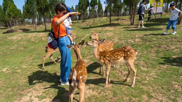 在云上牧场的这处小鹿森林里,养着200多只梅花鹿,在这里,我们可以亲手摸摸它们。