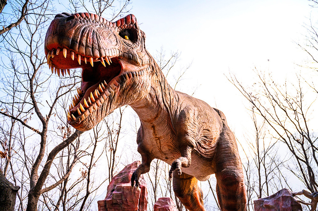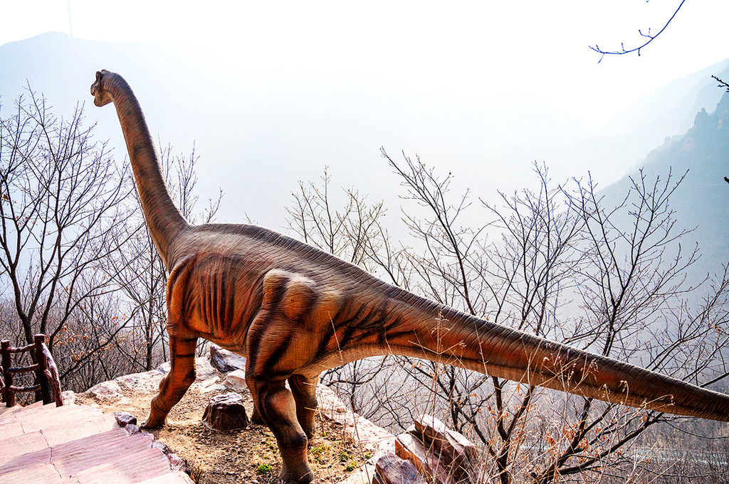 三泉湖山路两侧还悄悄隐藏着一个侏罗纪公园,各种不同形状不同身材的恐龙掩映在路旁,一不小心就摇摇尾巴撕吼一声,想要吓你一大跳。