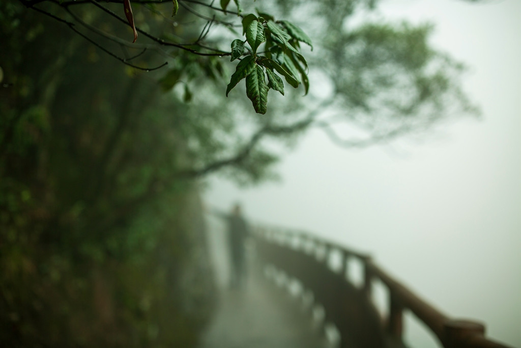 所谓“天意弄人”,毫无道理可讲。记得第一次来峎山,参观辣椒峰、骆驼峰景区,差不多同样的季节,也碰上寒雨微茫,烟雾笼罩下的辣椒与骆驼不肯现出真容,让人失望而归。今次也遇上小雨,烟雨迷蒙,不知能八角寨能否现身?