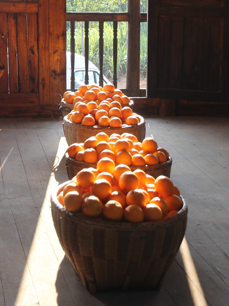 当地种橙人告诉我:“脐橙也有公母,肚脐眼凹下去是母,凸出来为母。峎山脐橙以直径65—75mm口味最佳,采摘后的脐橙放二天再食更好。食用时以手剥皮,刀切会破坏橙肉。地头这些脐橙,等天放晴就可以采摘了。”后来查资料,似乎没有“公母”之说,估计是种橙人善意的附会。