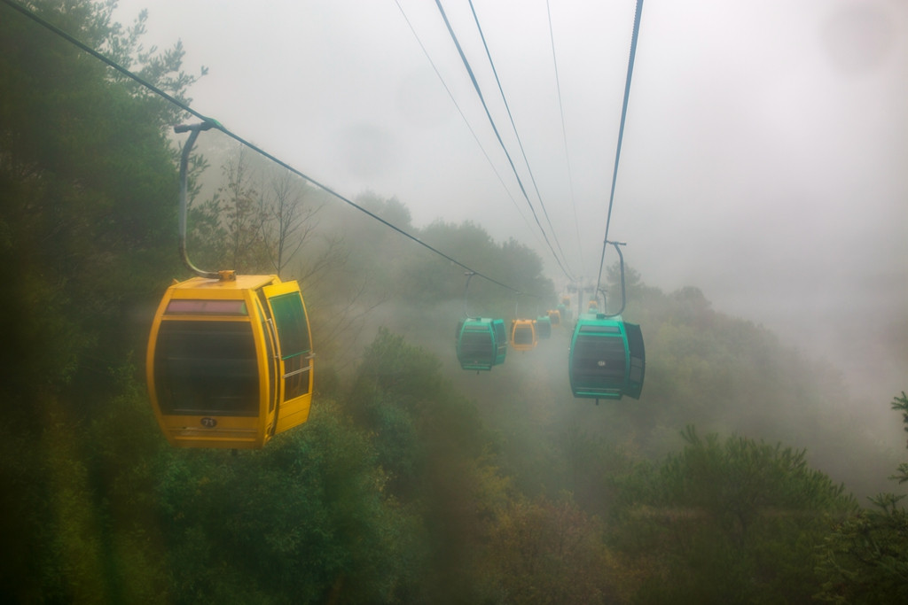 既来之,则安之。实际上,坐在缆车里,就已经知道结果。只见缆车在云雾里进进出出,隐隐约约,倒像是腾云驾雾,别有意趣。八角寨又叫云台山,不是占山为王的土匪窝。因其主峰海拔818米,有八个翘角而得名,一边属广西资源县,一边属湖南新宁县。