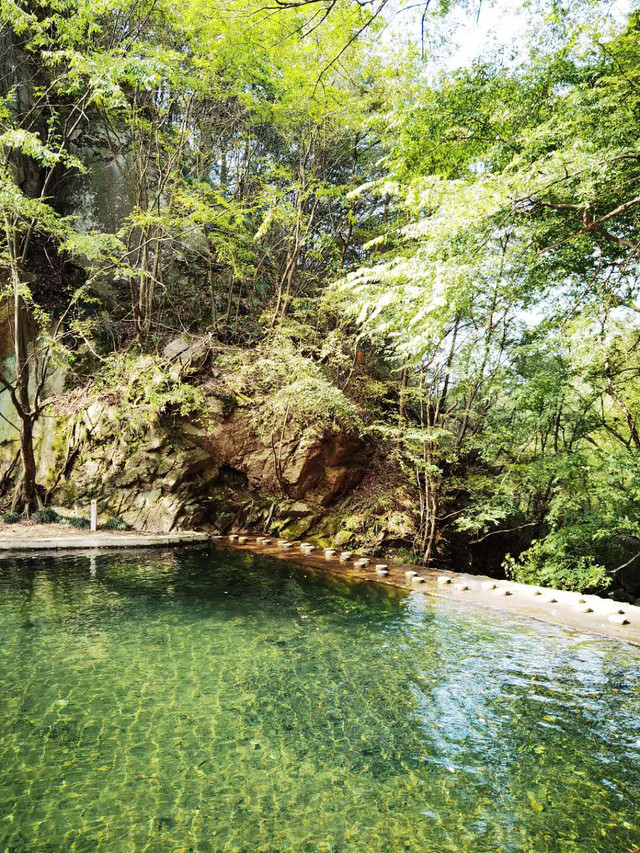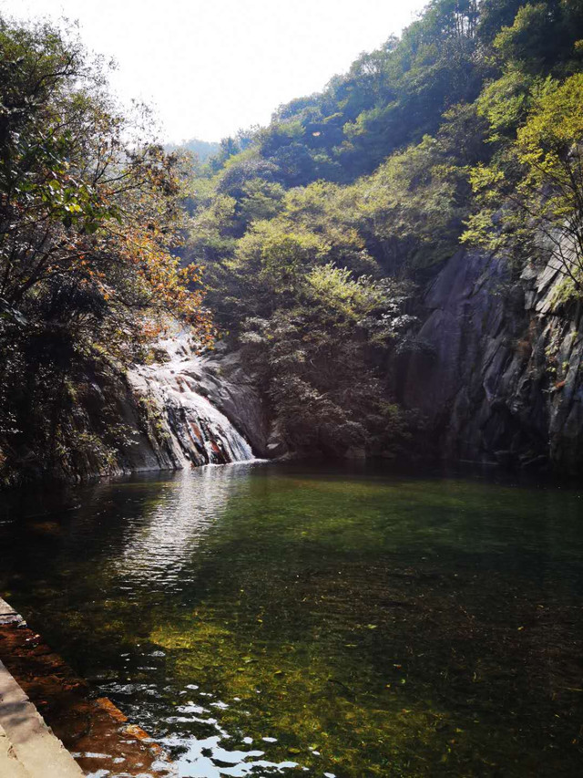 这水清澈见底,小孩都要忍不住去玩水了,可惜秋天并不是玩水的季节
