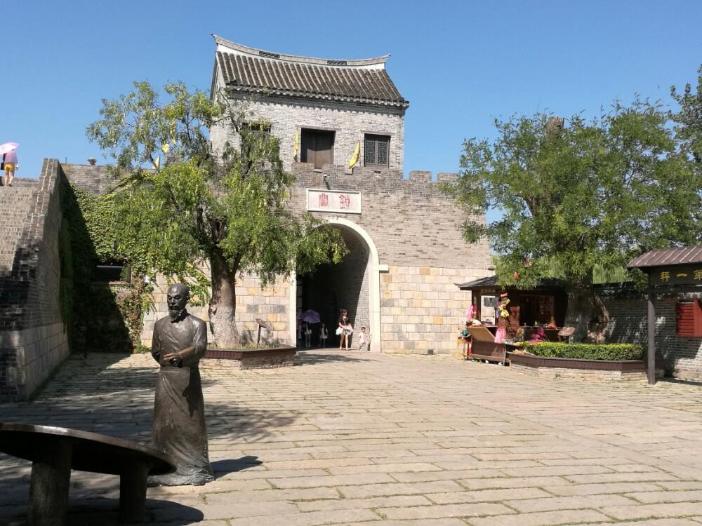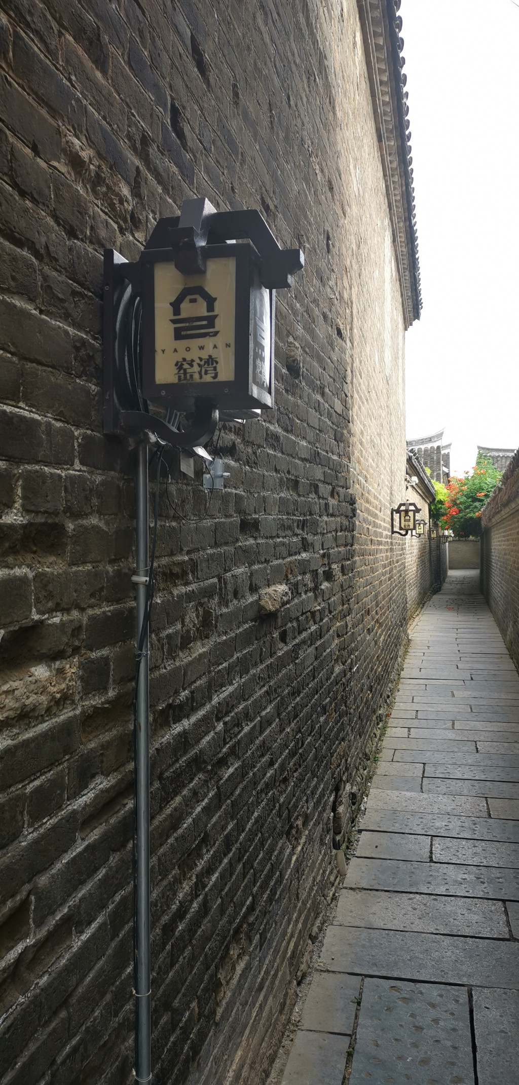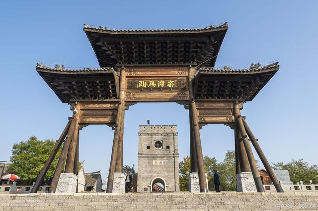 远看一个气势如虹的城墙、城楼,通过一个石板桥才能进入城门,城门上书“窑湾”二字。