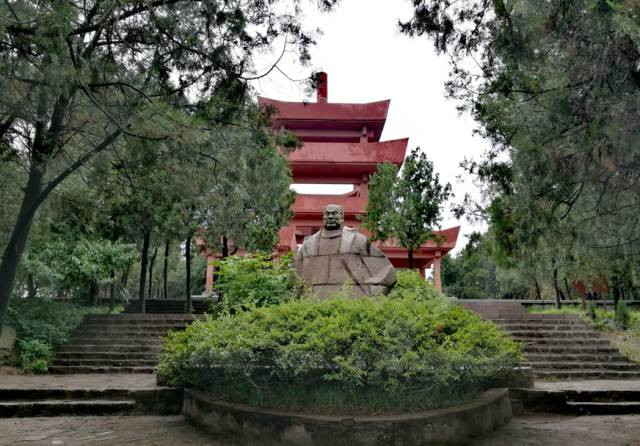 宿北大战纪念碑亭及亭前的陈毅塑像