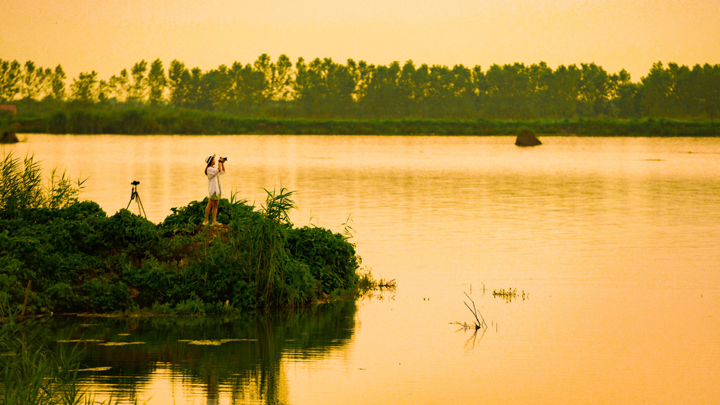 差不多半小时中,夕阳有时会隐藏在云中射出金光,有时露出云朵洒落金子般的光芒…那一刻我觉得整个世界都安静了,耳边只有风声吹过水生植物芦的呼声,和湖水打在岸边的哗啦声,即使在城市里也能感受到骆马湖的梦幻日落。