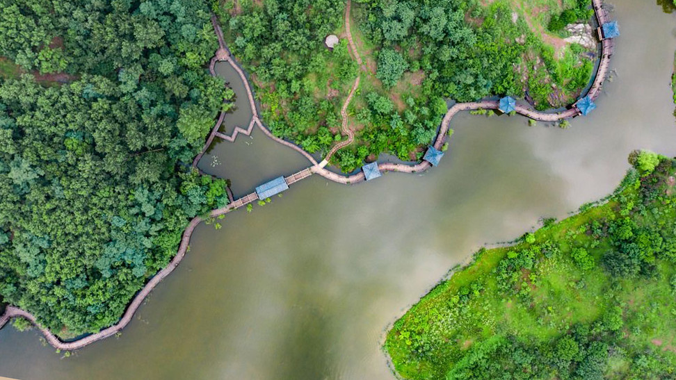 最重要的是森林中特别清凉,除了爬山,还有很多水路,中间用“金钱路”像棋子一样石墩连接,森林中隔3分钟就有水雾喷出,不仅解暑,整个森林都蒙上了一层神秘感,仿佛随时都会有仙子从林中走出来,难怪古人会称它为“第一江山”。