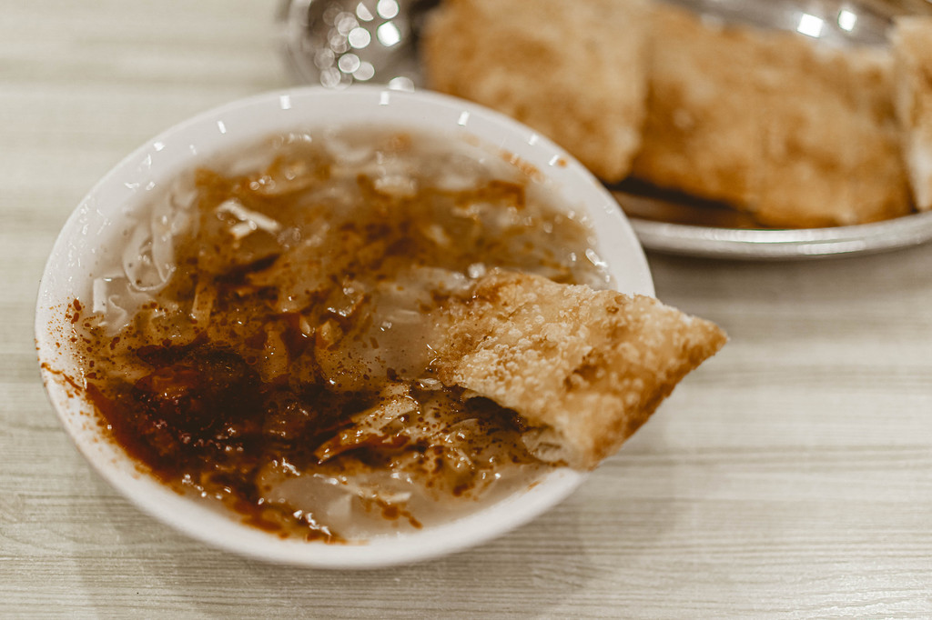 点了份姜家辣汤,据说他家的秘方辣汤不是面芡,而是用手工制作面芡。主要食材用精面粉、猪圆骨、鸡丝、山药等等,再用八角、茴香、胡椒、花椒..不停的熬,最后的辣汤香辣绵口,一口下肚回味无穷。