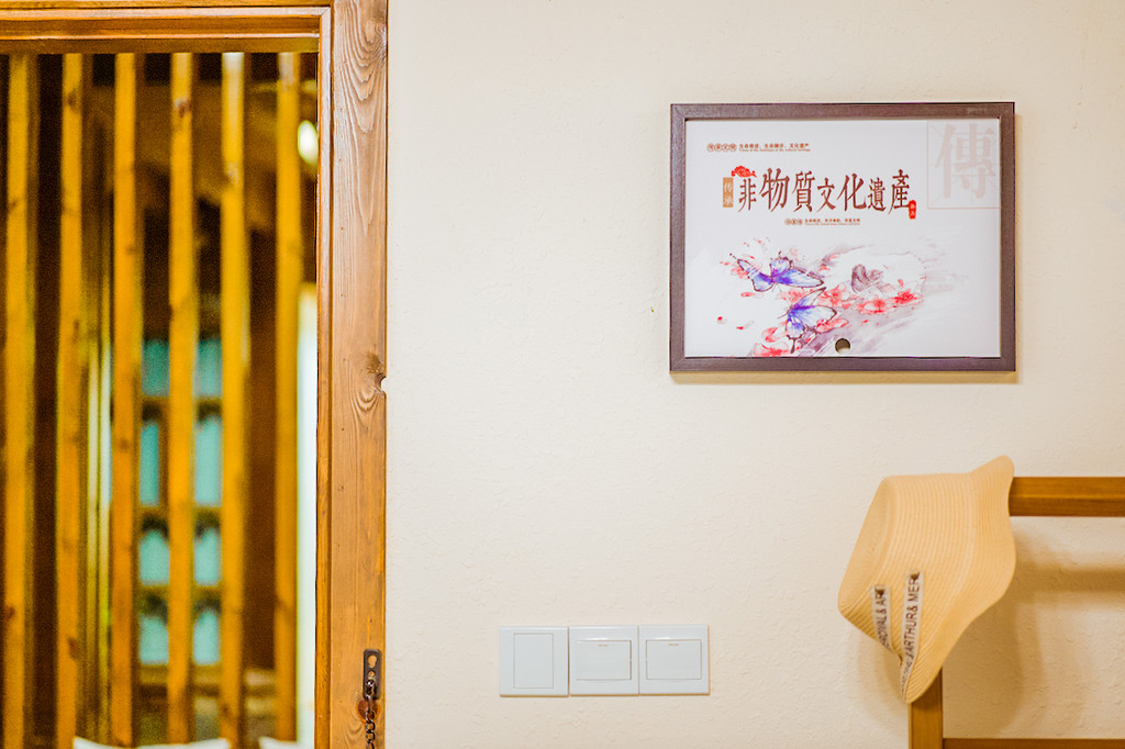 这里依山傍水,远离了城市的喧嚣,山水相逢中流露了诗意。当地的非遗融入在每个细节中,和房间里。
