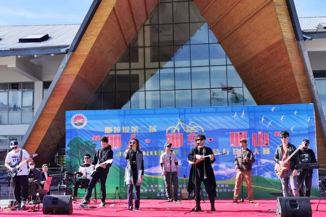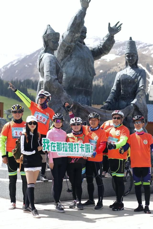 到达终点游牧人家的打卡点,骑行爱好者们纷纷在这里合影留念。我要跑上去蹭了几张合影。