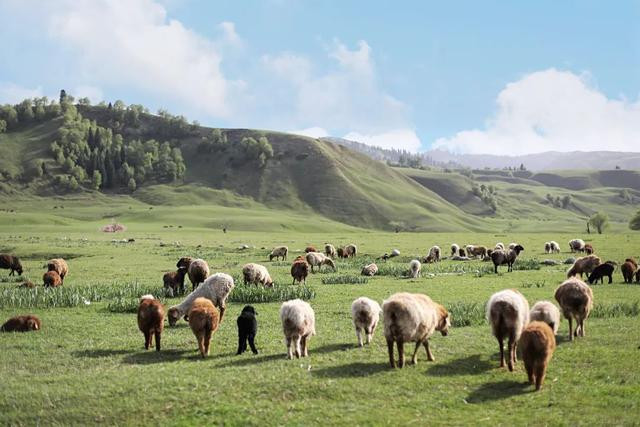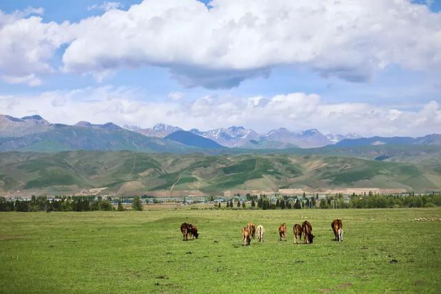 白雪皑皑的山峰、茂密的森林、连绵起伏的山丘...风和日丽,绿草茵茵。