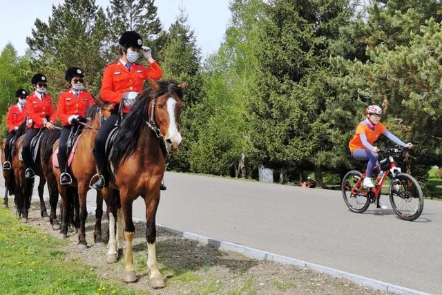这骑马的和骑车的同框,仿佛时空交汇而过。